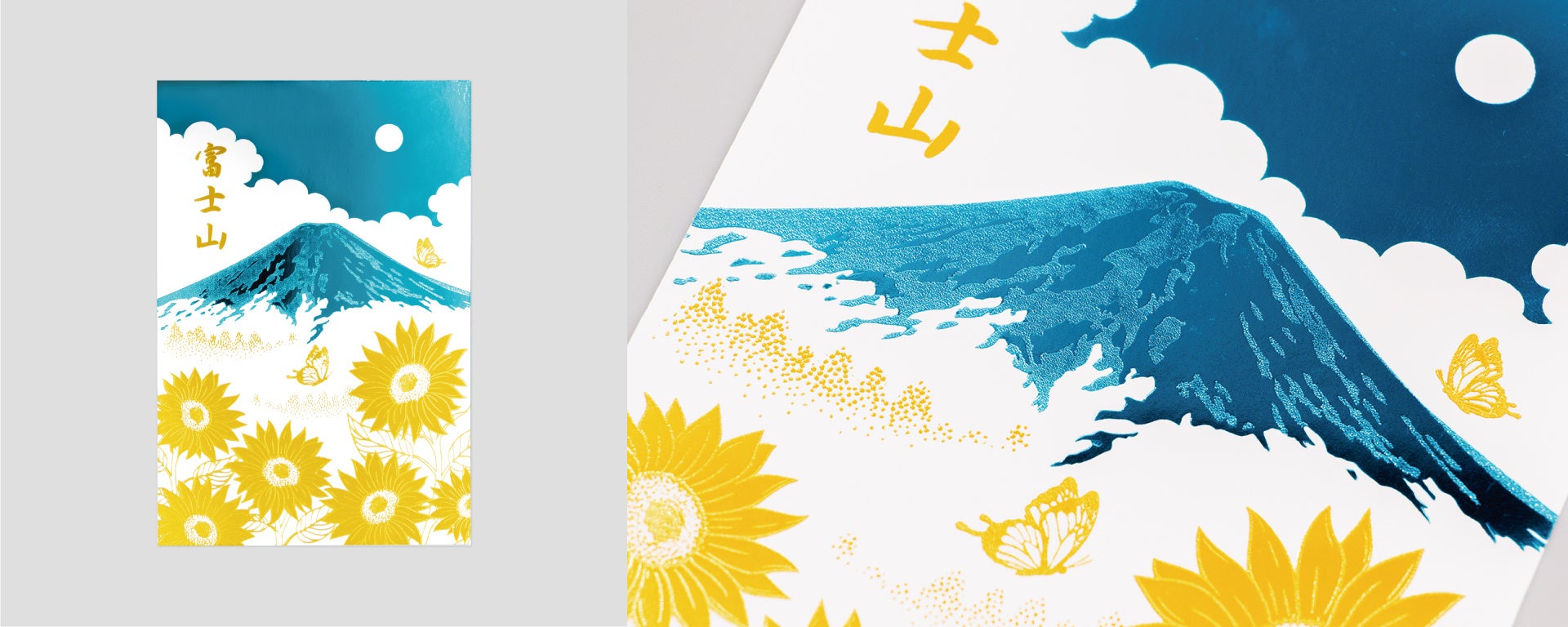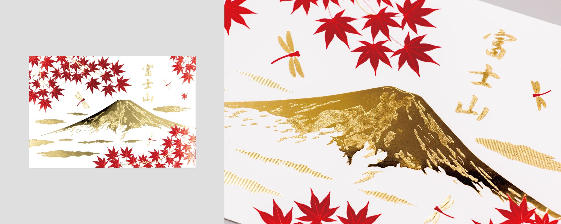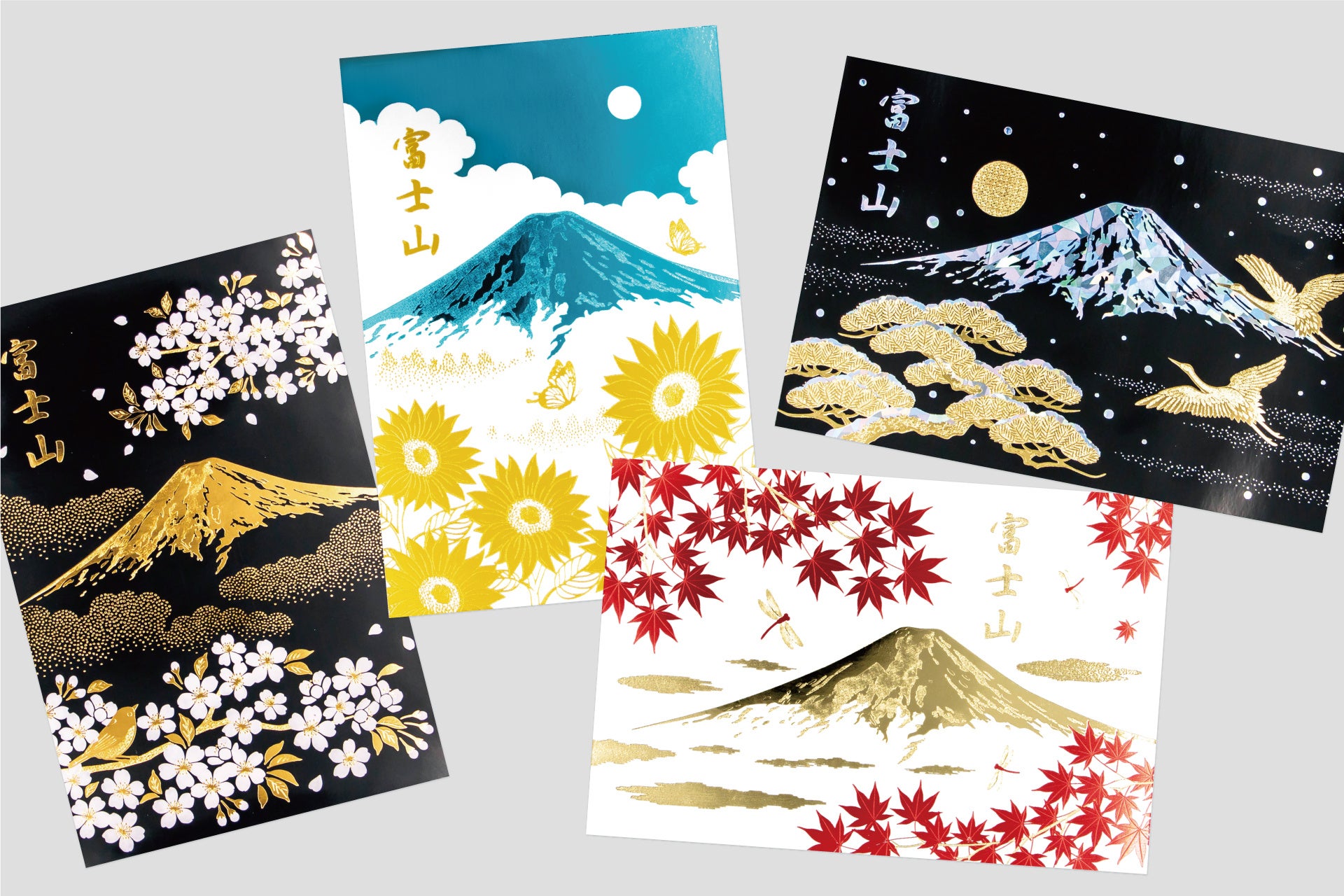 【新商品】箔押しブランド「ROKKAKU」より、全面箔押し加工の『日本名所シリーズ 富士山 箔押しポストカード 』新柄が登場!「夏」「秋」を販売開始いたします