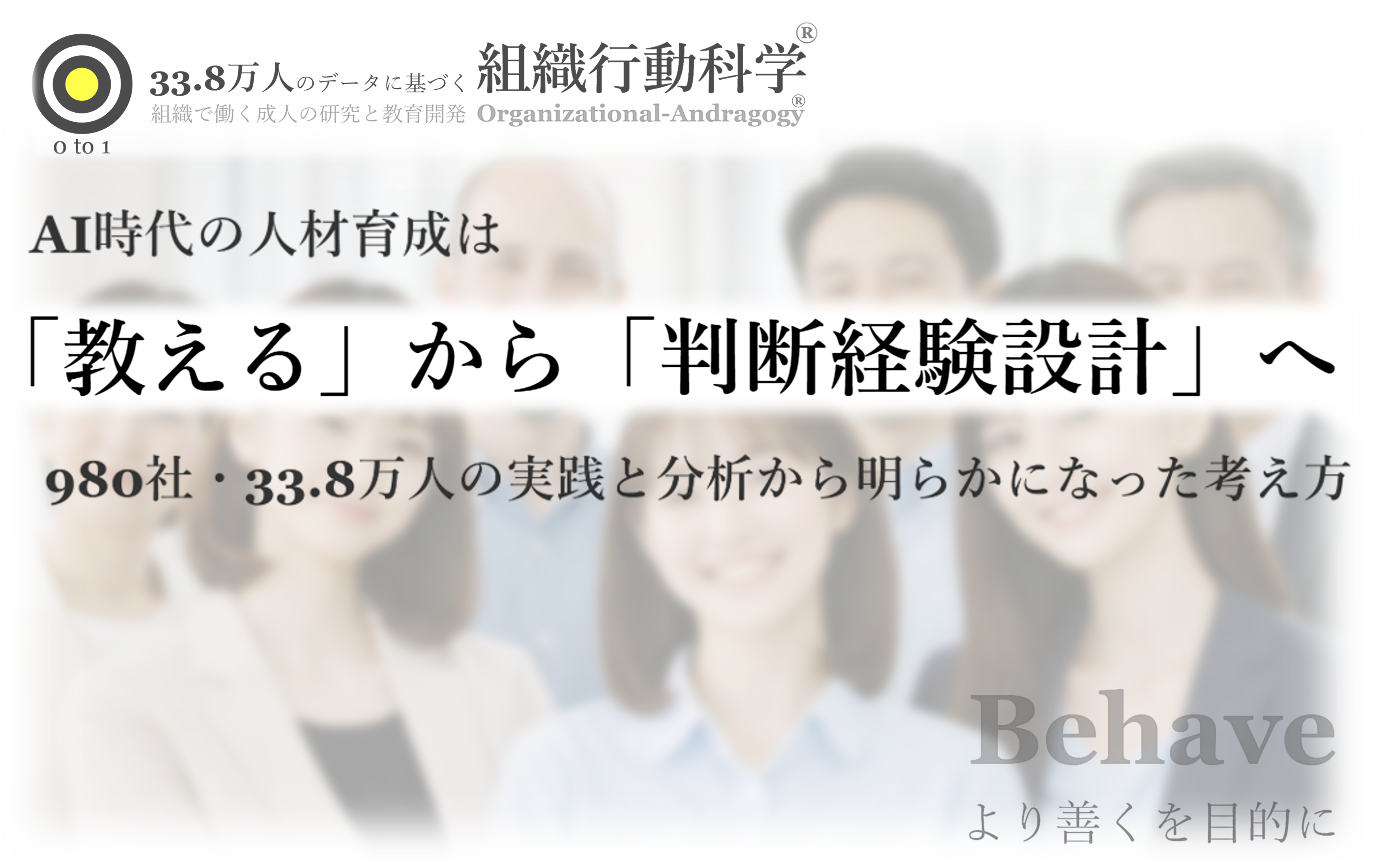 AI時代の人材育成は「教える」から「判断経験設計」へ:980社・33.8万人の実践と分析から明らかになった考え方を公開(組織行動科学®)