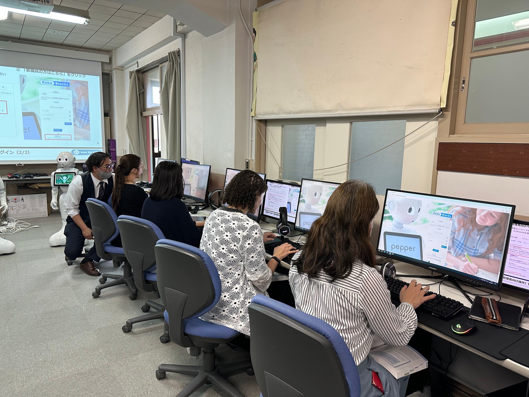 神戸山手グローバル中学校高等学校では、Pepperを2台導入し、教員向け研修や生徒向けの出前授業を開催するなど、本パッケージを活用した授業が本格的に始まっています。