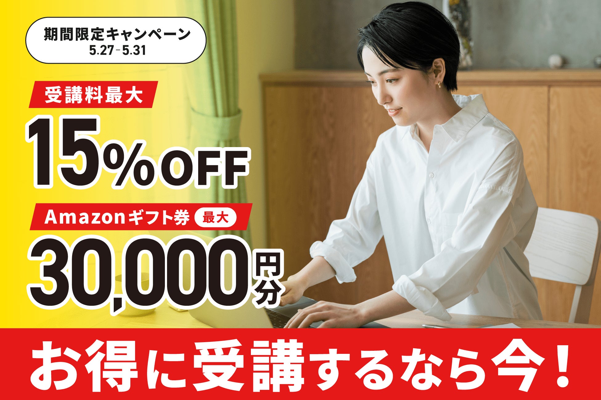 ①受講料最大15%OFF