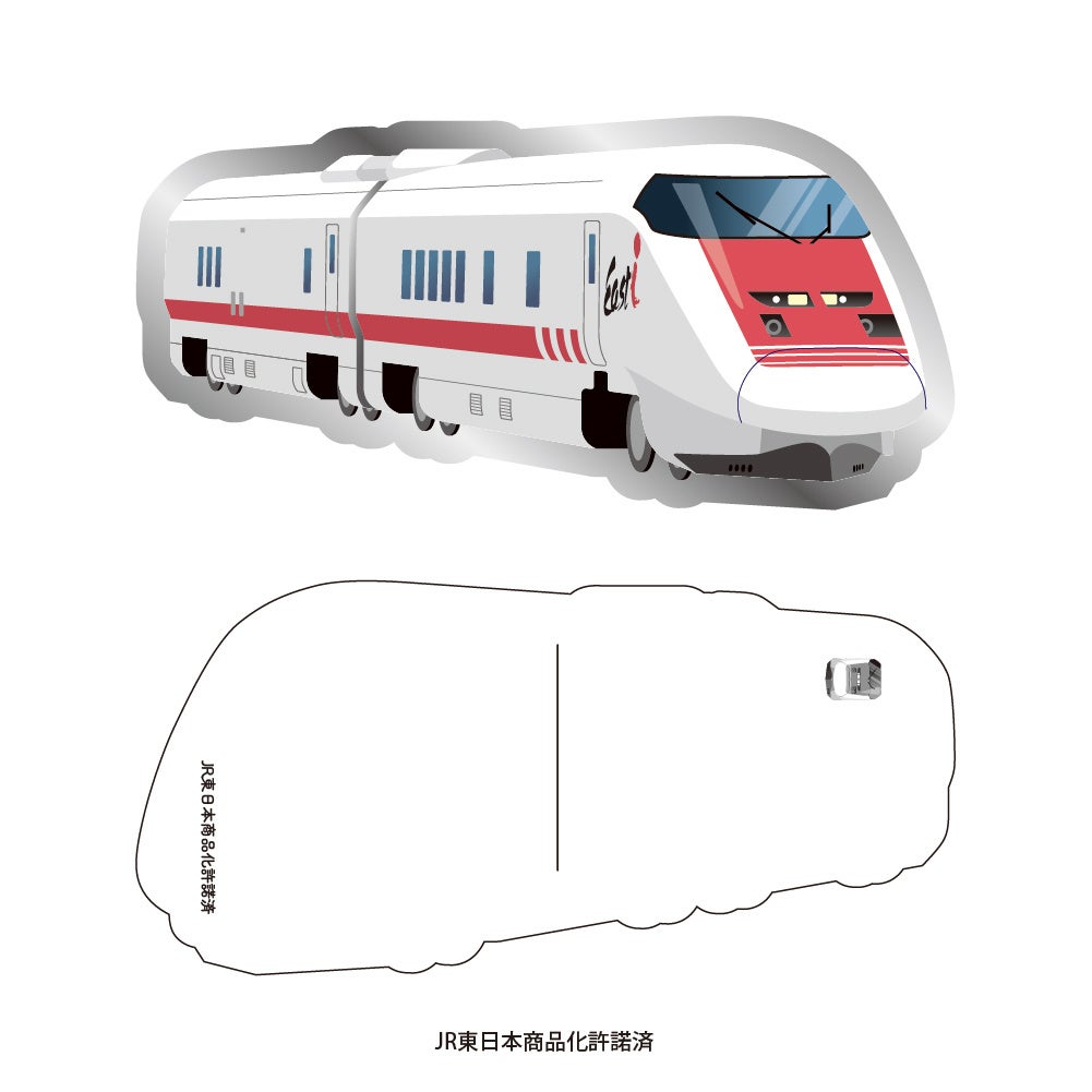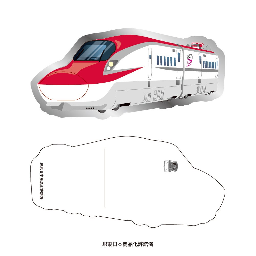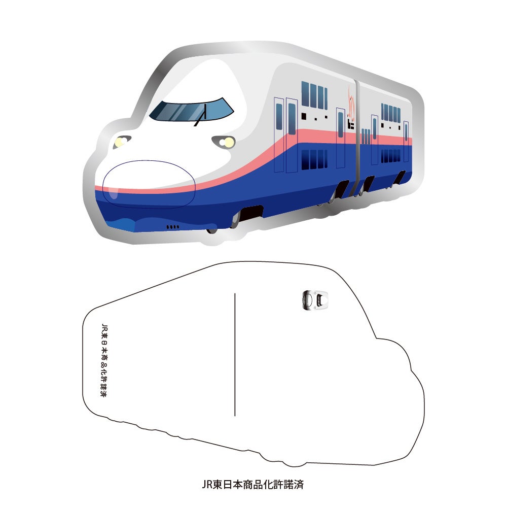 東日本旅客鉄道株式会社(JR東日本)の新幹線をモチーフにしたダイカットカードです。車体の光沢感をイメージしたメタル調の紙に、異なる角度から新幹線の車体が描かれたダイカットカード2枚がセットになっています。