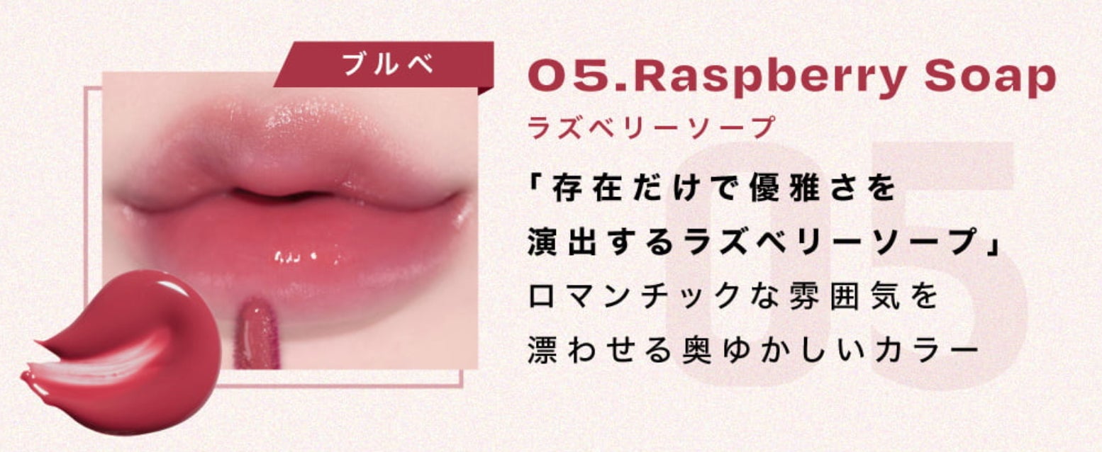 Dusty Mauve<ダスティモーヴ>みんなから愛される、キュートなストロベリーミルクくすみ感がありながらも透き通った色合いのモーヴカラーとCoral Amber<コーラルアンバー>あたたかい春の訪れを感じさせるコーラルカラーを日本限定色として販売