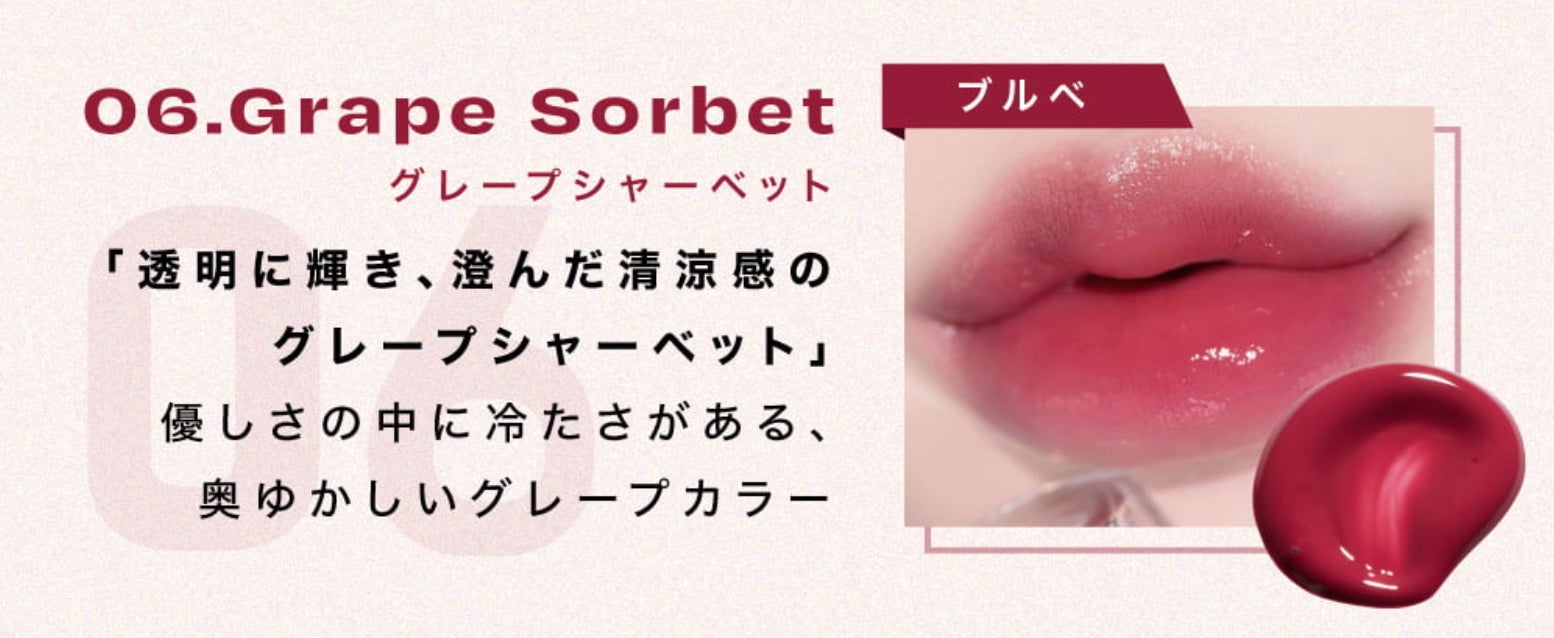 優しさの中に冷たさがある奥ゆかしい色合いのグレープカラー透明に輝き、澄んだ清涼感のぶどうシャーベット
