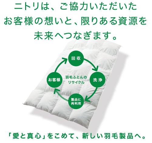 【ニトリ】お客様とともに取り組む資源循環・再製品化 「リサイクル羽毛ふとん」を10月29日(土)より一部店舗で数量限定販売開始!