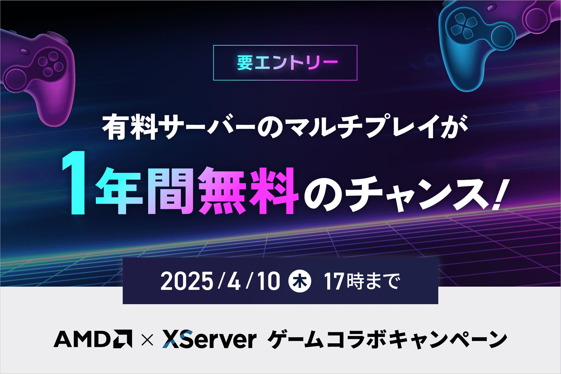 エックスサーバー株式会社(所在地:大阪市北区、代表取締役:小林尚希)は、当社が提供するマルチプレイ専用ゲームサーバー『XServer GAMEs』において、2025年3月27日(木)から2025年4月10日(木)まで、「AMD×エックスサーバー ゲームコラボキャンペーン」を開催します。