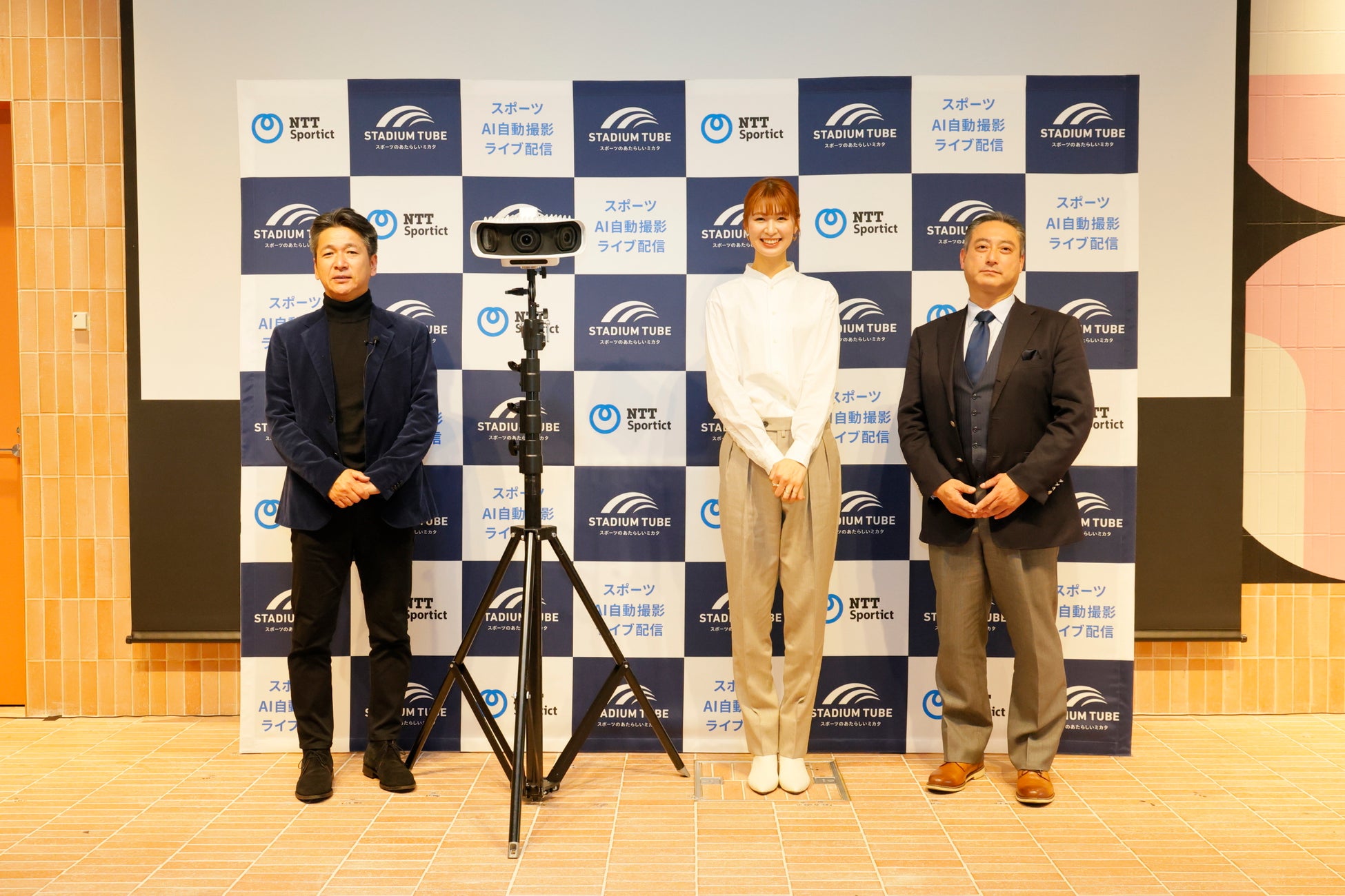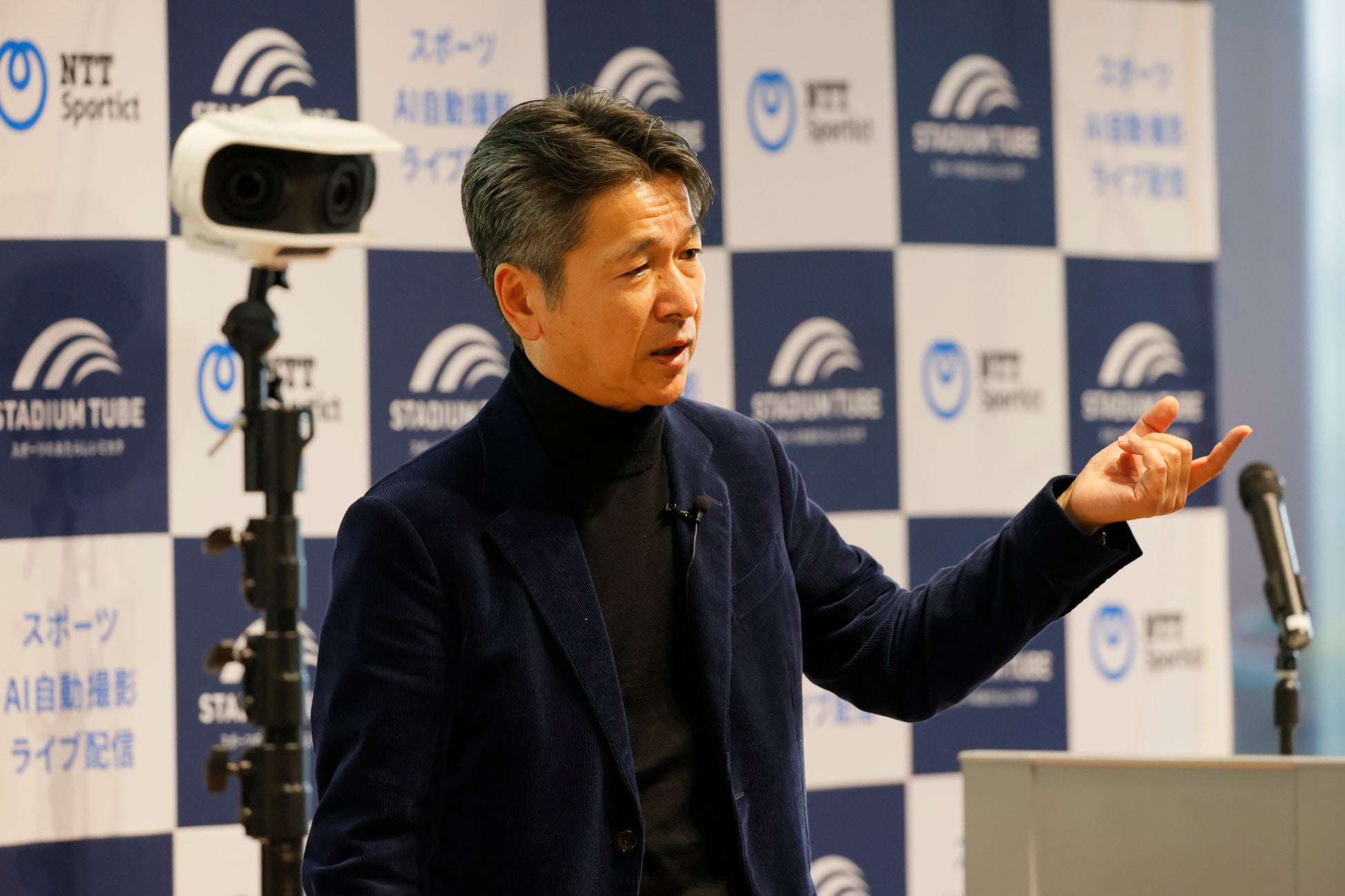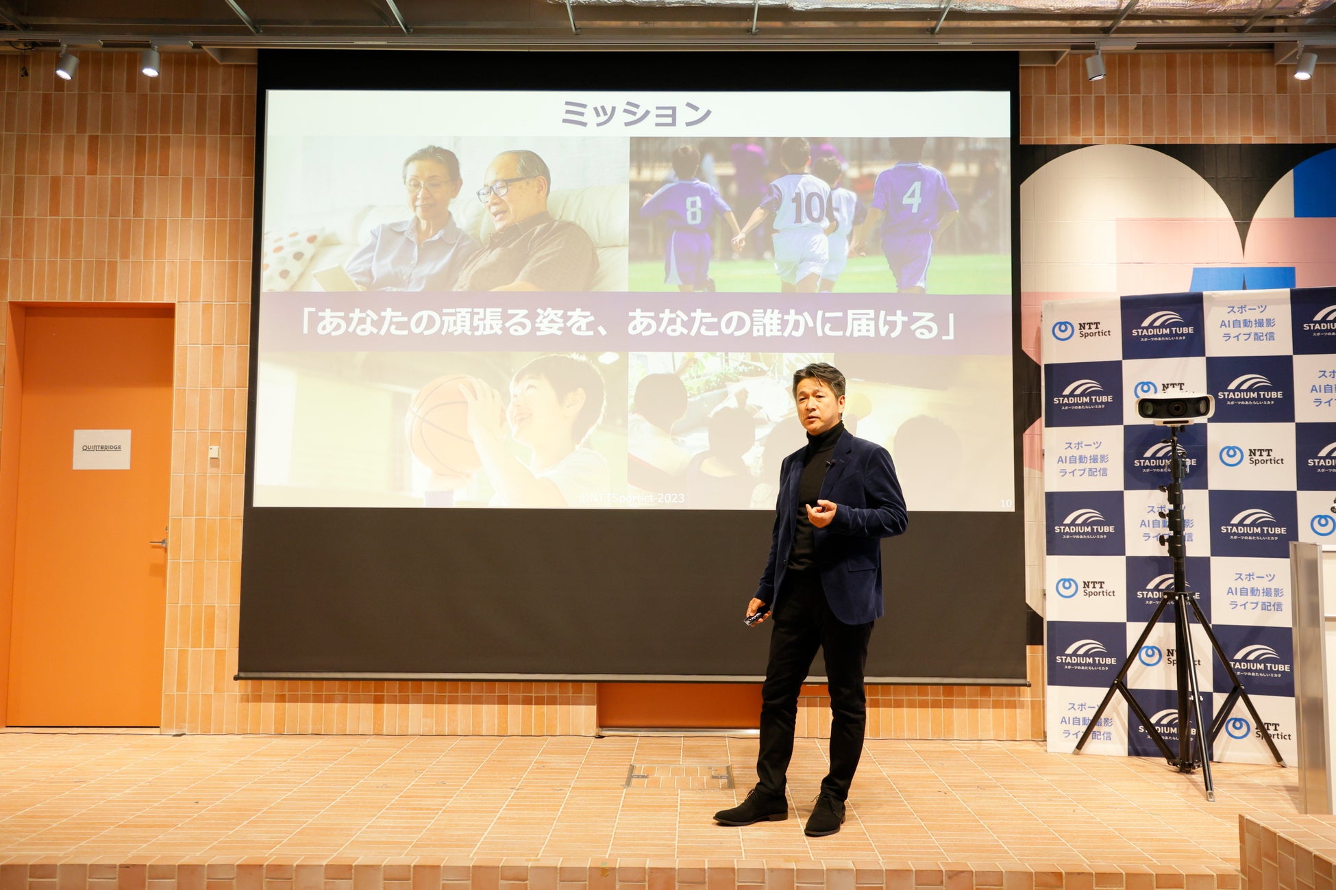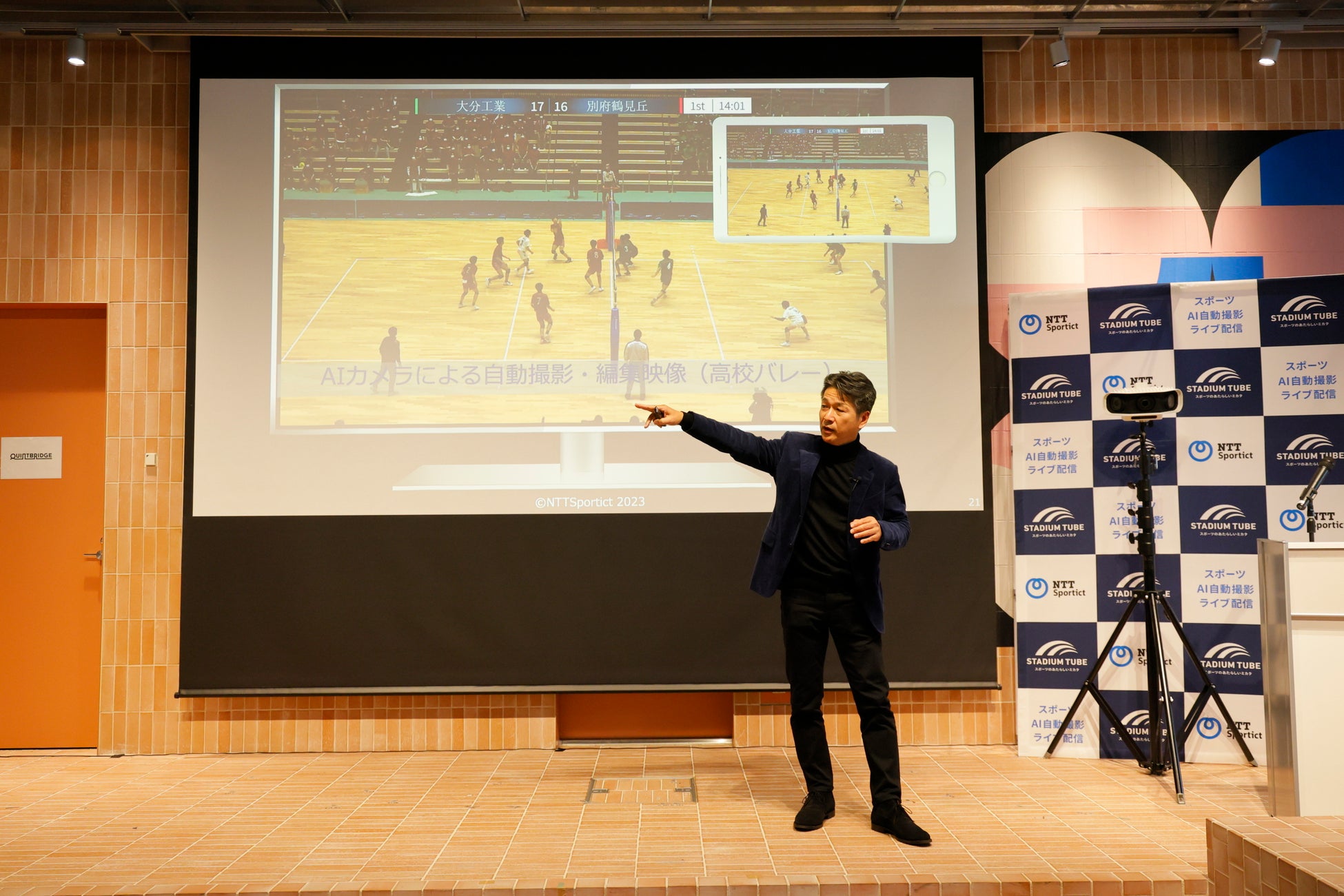 発表会では、NTTSportictの提供するAIスポーツ映像ソリューション「STADIUM TUBE」をはじめとする各種サービスのご紹介のほか、今後展開を予定している「スポーツDXにおける地域活性化」と題した自治体に向けた新たな事業戦略と導入事例についてご説明。