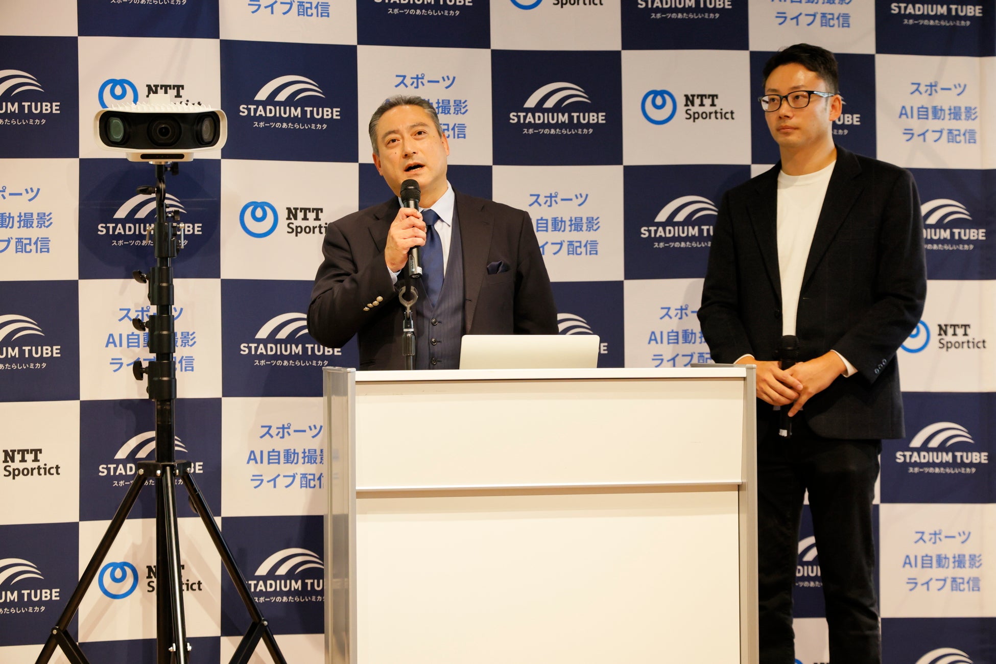 株式会社NTTSportict(⼤阪市都島区 代表取締役社⻑ 中村正敏、以下 NTTSportict )は、 2023年11月29日(水)13時より大阪QUINTBRIDGEにて、メディアの皆様に向けた「AI技術を活用したスポーツ映像の自動撮影・ライブ配信サービスについての事業戦略発表会」を開催いたしました。
