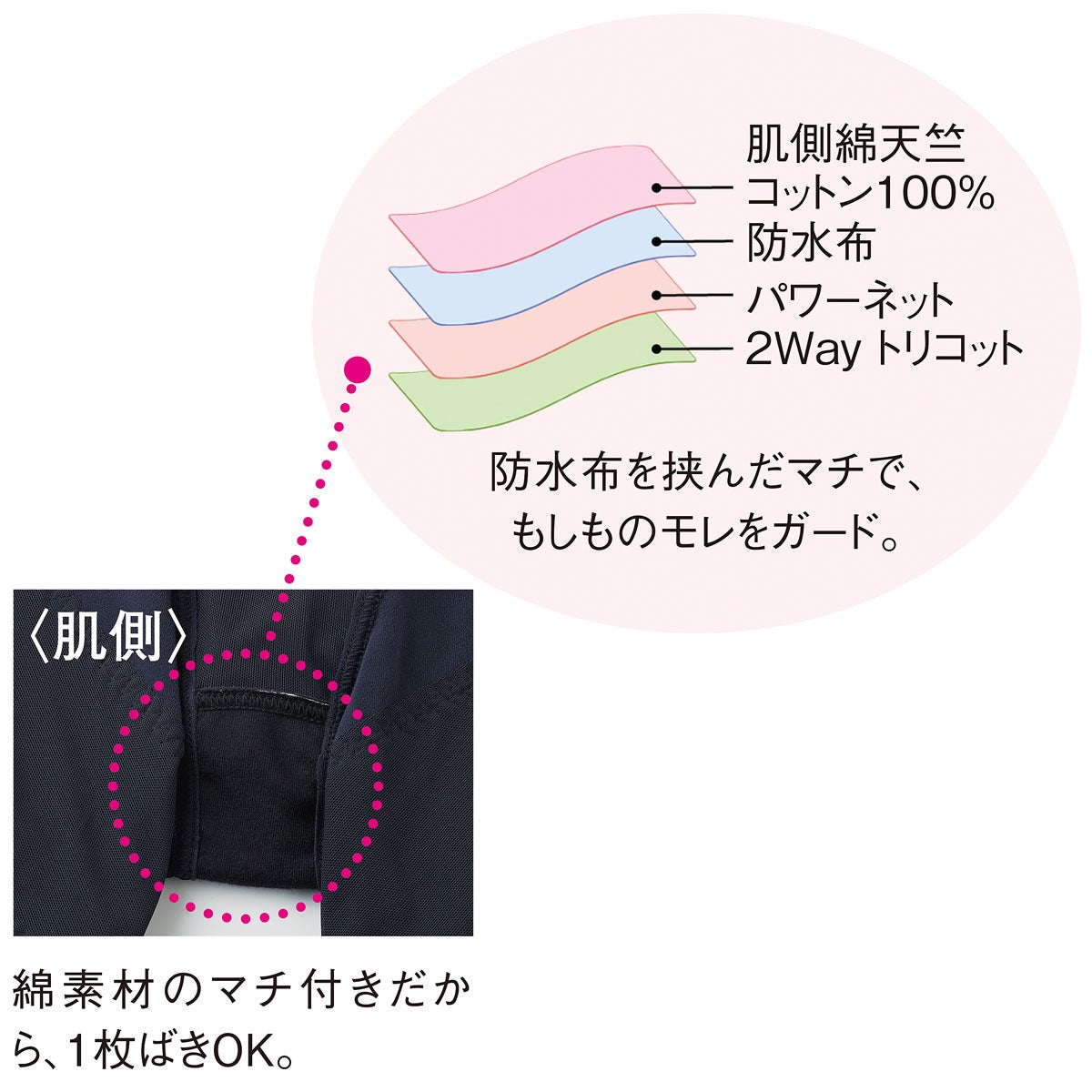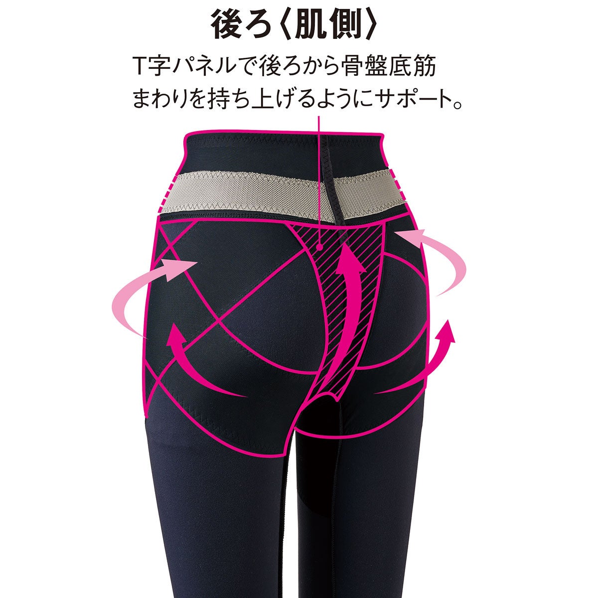 出産や加齢によりゆるみがちな骨盤底筋まわりを引き上げるようにサポートする9分丈のレギンス。フロントからバックにかけてのパワーネットが骨盤底筋まわりをギュッと持ち上げ、さらに骨盤まわりを引き締めるパワーネットで立たせるように整えます。綿素材のマチ部分は防水布を挟んでおり、さらに裏起毛で暖かくすることで、「あっ!」という時の備えとともに冷えからも守ります。見た目は普通のレギンスなのでこっそり骨盤底筋まわりのトレーニングにも。ワンピースとのコーディネートや、ボトムの下に気軽に着用いただけます。