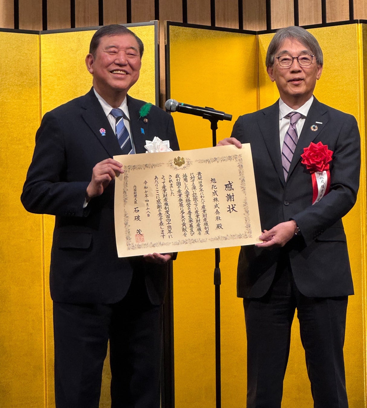 旭化成株式会社(本社:東京都千代田区、社長:工藤 幸四郎、以下「当社」)は、このたび、経済産業省 特許庁が主催する「令和7年度 知的財産権制度活用優良企業等表彰」において 産業財産権制度普及発展特別功労企業として「内閣総理大臣感謝状」を受賞しました。