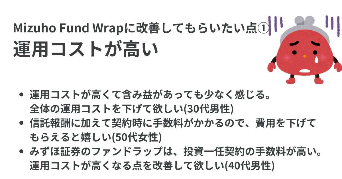2024年10月に行ったみずほ証券のファンドラップ「Mizuho Fund Wrap」に関する調査結果を紹介いたします。