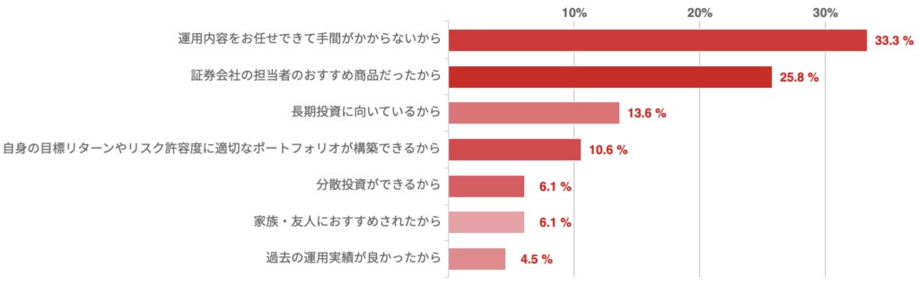 アンケートによれば、「運用内容をお任せできて手間がかからないから(33.3%)」が最も多かった。