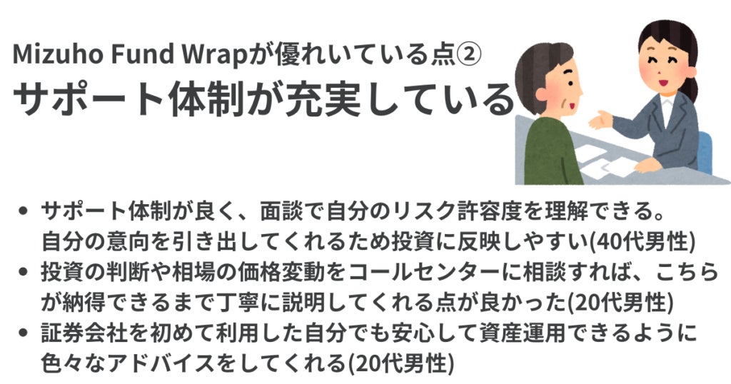 今回のアンケートを通じて、Mizuho Fund Wrapが多くの投資家から支持されていることが明らかとなった。