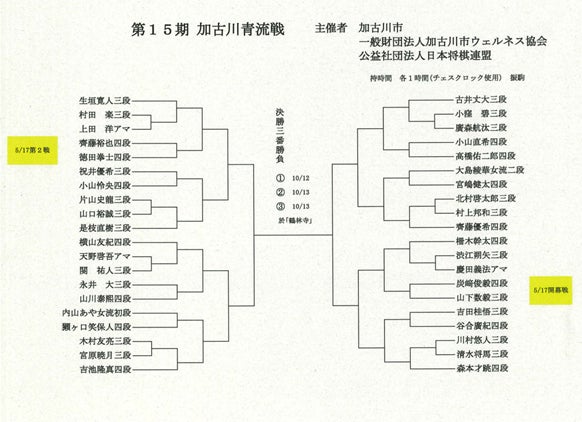 「第15期加古川青流戦」のご取材については、公益社団法人日本将棋連盟の規定がございます。