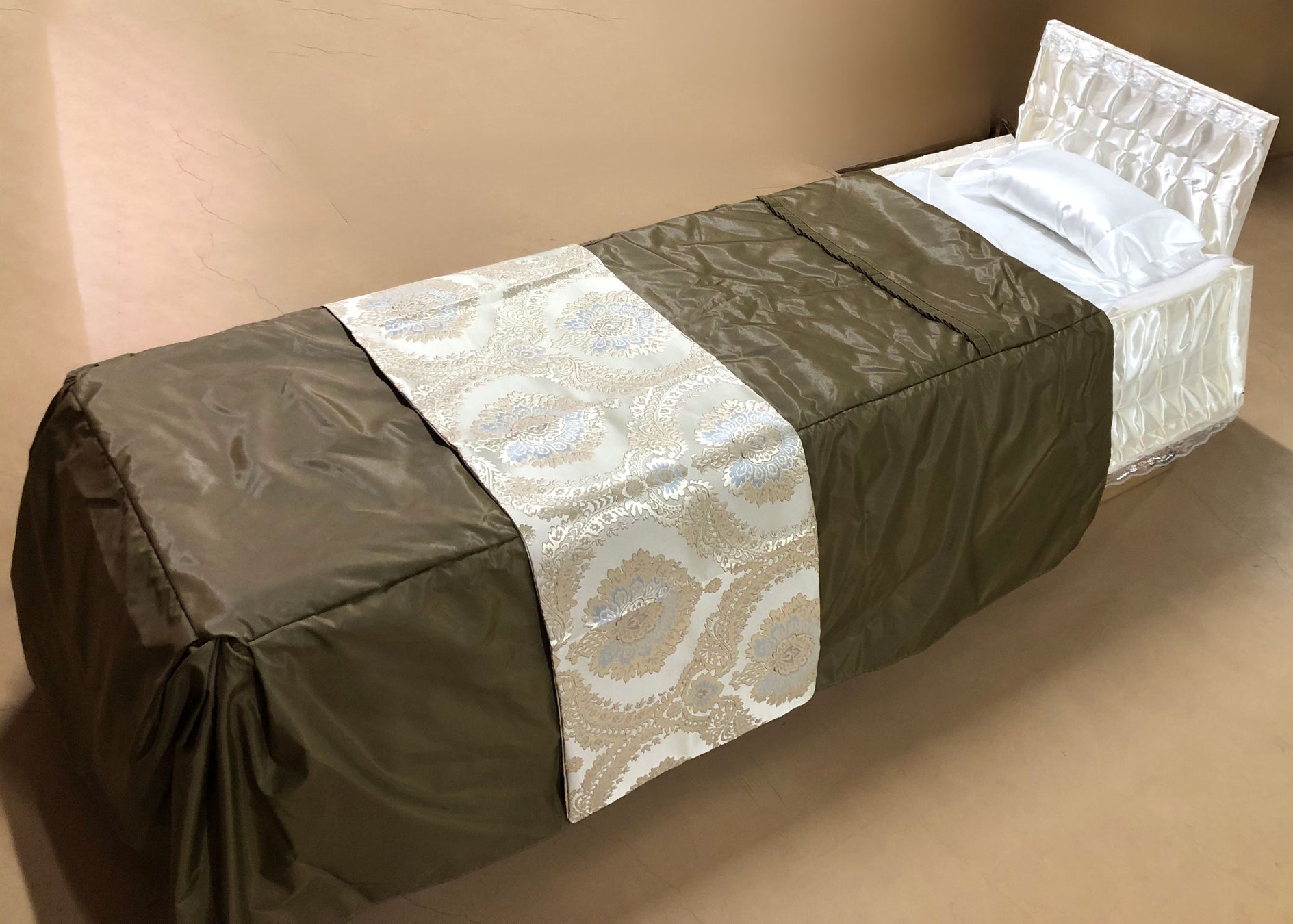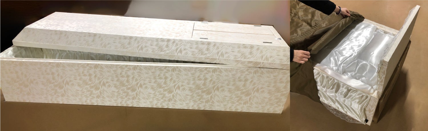 ・コストを削減: ベッドにもなる形状のため、棺としての装飾はシンプルに抑えお選びいただきやすい価格になっています