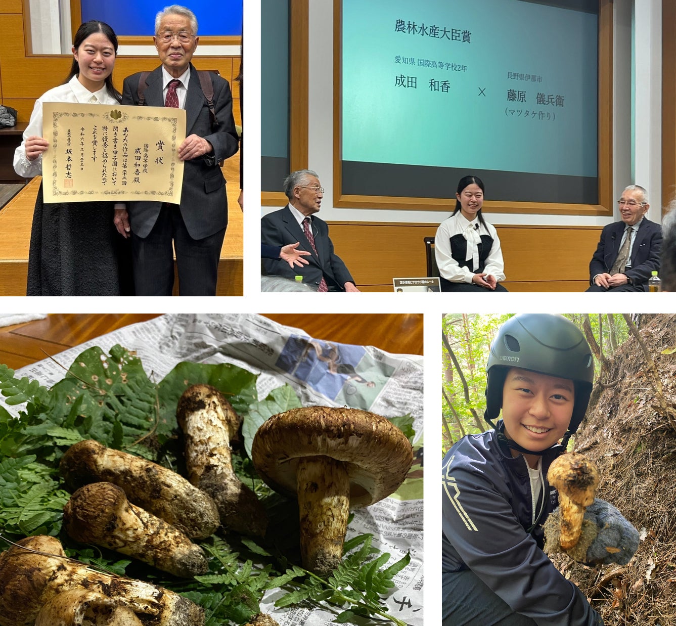 国際高等学校2年の成田和香(なりた のどか)さんは、2年次から取り組んでいる国際バカロレア・ディプロマプログラムの必修科目のCAS: Creativity、Activity、Service(創造性・活動・奉仕)の一環で、「聞き書き甲子園」に参加し、昨年9月からマツタケづくりの名人を取材するために長野県伊那市を複数回訪れ、取材を行ってきました。その取材内容をもとに書き上げた作品は、「第22回聞き書き甲子園」において高い評価を受け、農林水産大臣賞の受賞が決定しました。