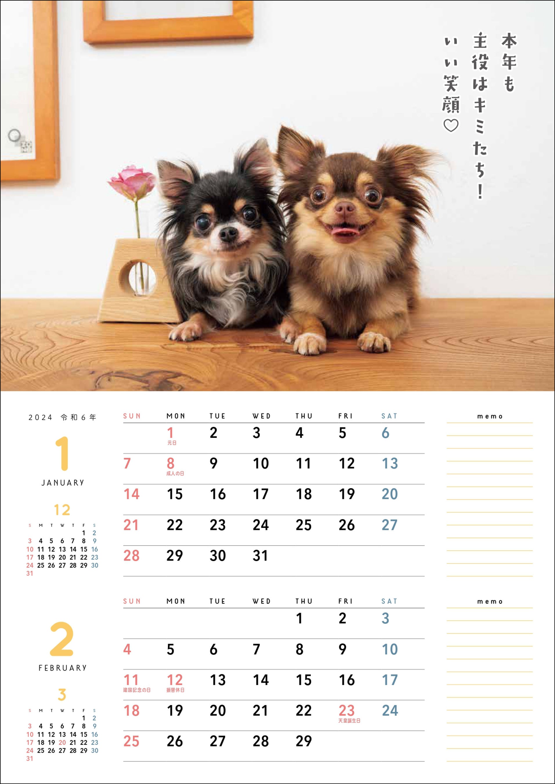 特別付録として、毎月かわいらしいチワワが楽しい川柳を詠んでくれる「チワワ川柳カレンダー 2024」がついてきます。予定も書き込みやすい便利な仕様です♪