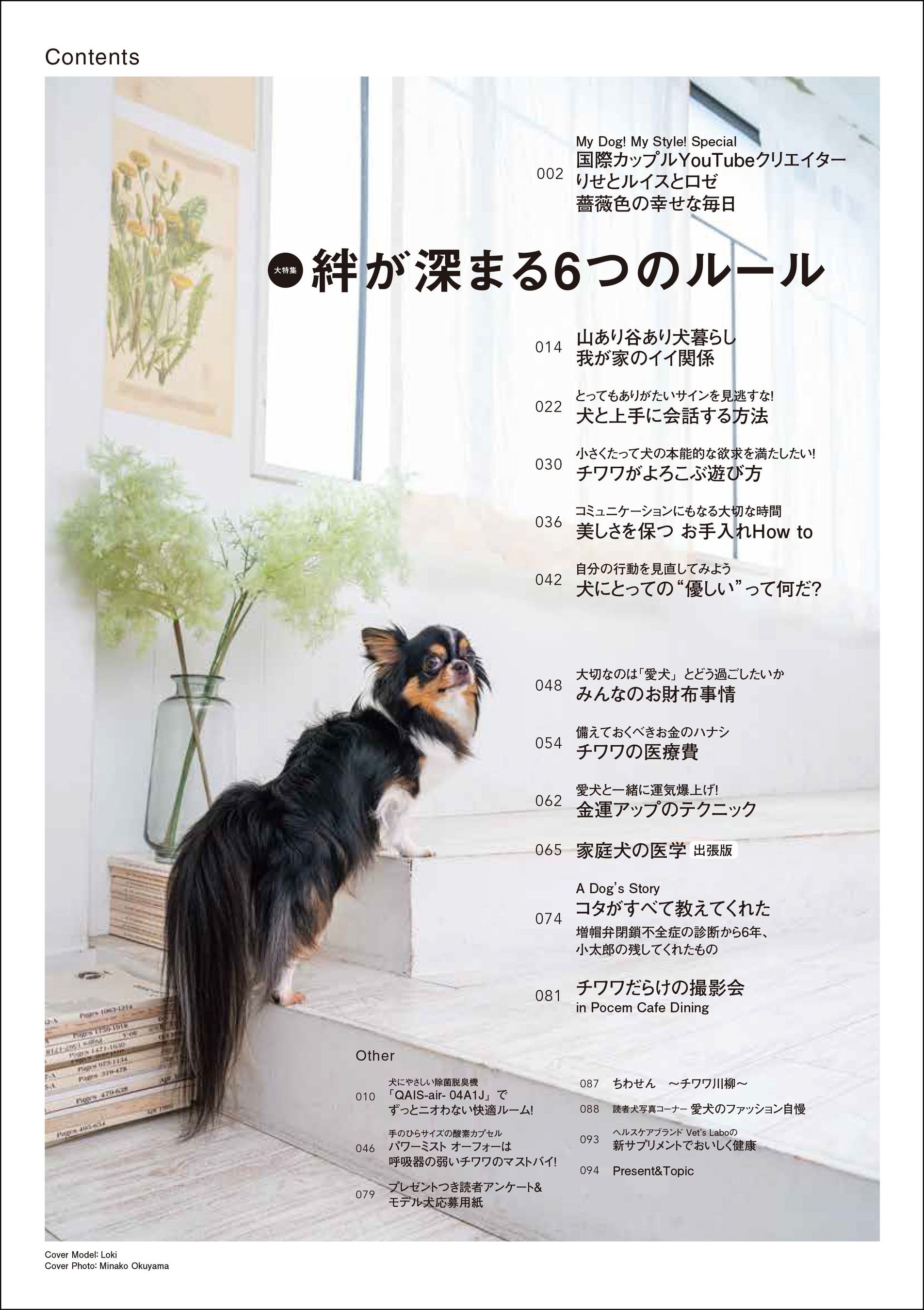 大特集「絆が深まる6つのルール」の他、チワワの一生でかかる医療費やチワワと一緒に金運を上げるテクニックなど、注目の特集が盛りだくさん!