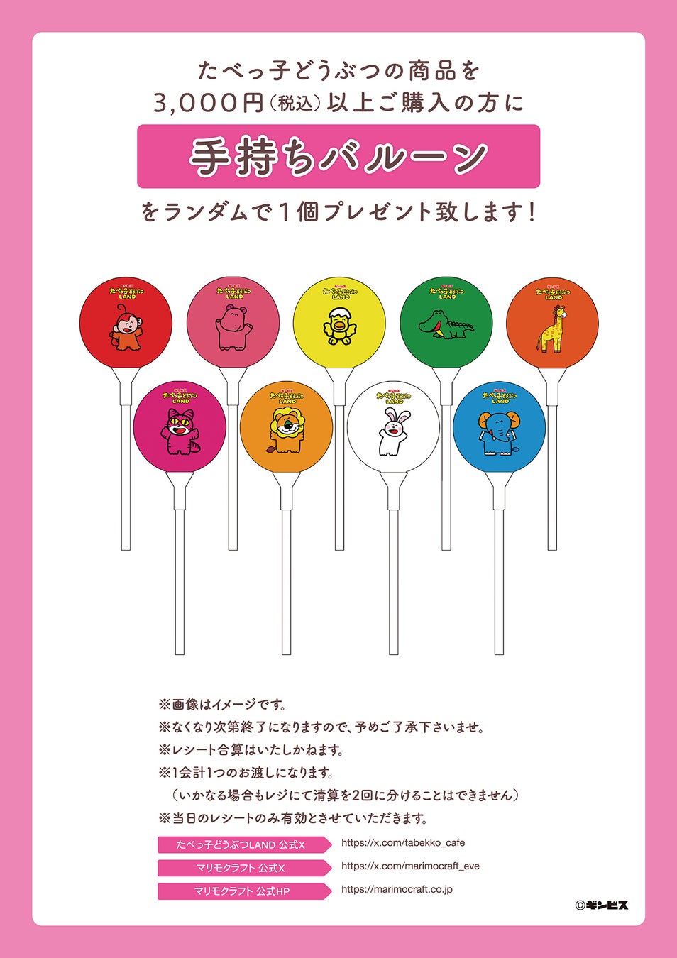 最新情報は「たべっ子どうぶつLAND POP UP STORE」特設ページもしくは「マリモクラフト_イベント用Xアカウント」をご覧ください。