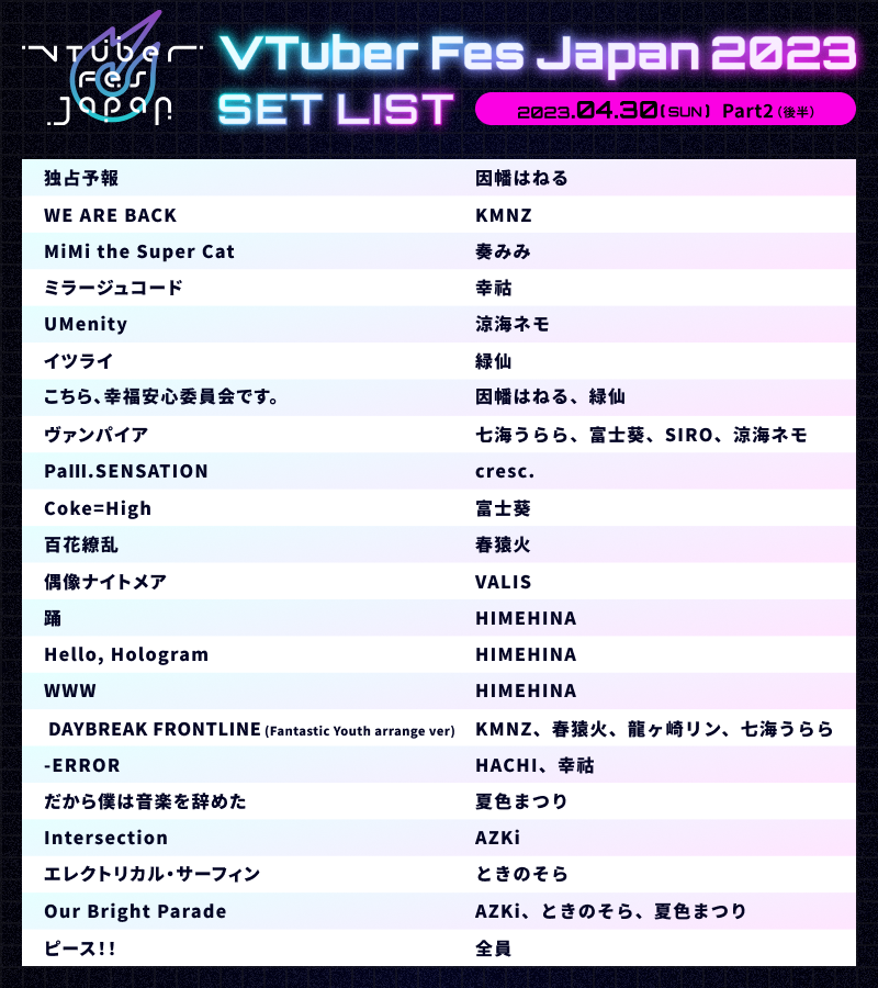 【VTuber Fes Japan 2023・イベントレポート】AZKi、HIMEHINA、富士葵、緑仙など総勢45名の人気VTuberが4時間超の怒涛コラボ!