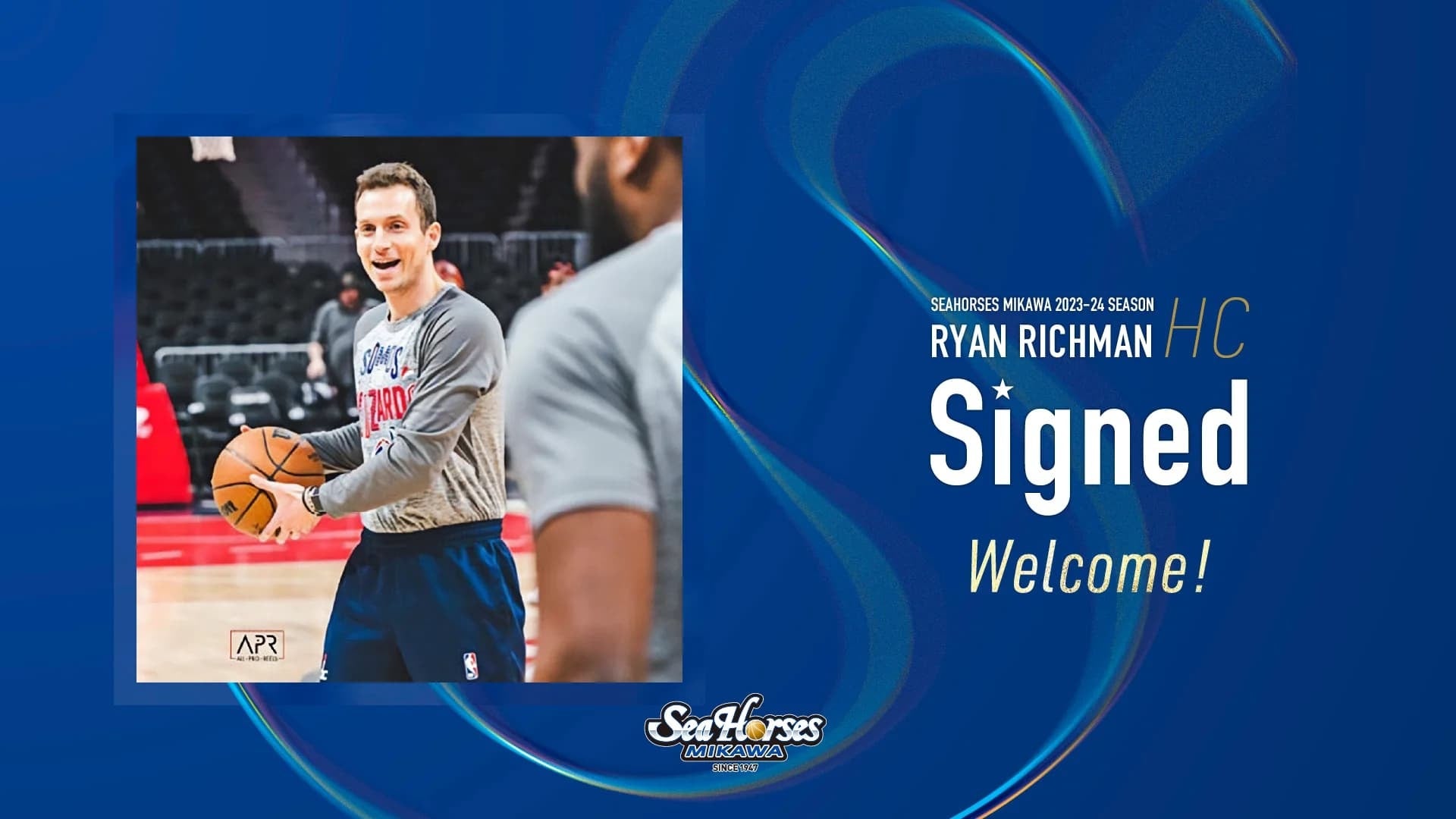 この度、ライアン・リッチマン氏が2023-24シーズンのヘッドコーチ就任が決まりましたので、お知らせいたします。