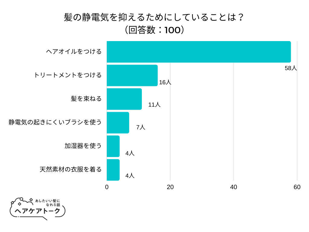 ・髪の毛に潤いがあれば静電気が発生しにくいと聞き、朝と夜にきちんとヘアオイルをつけるようにしているからです。(20代女性)