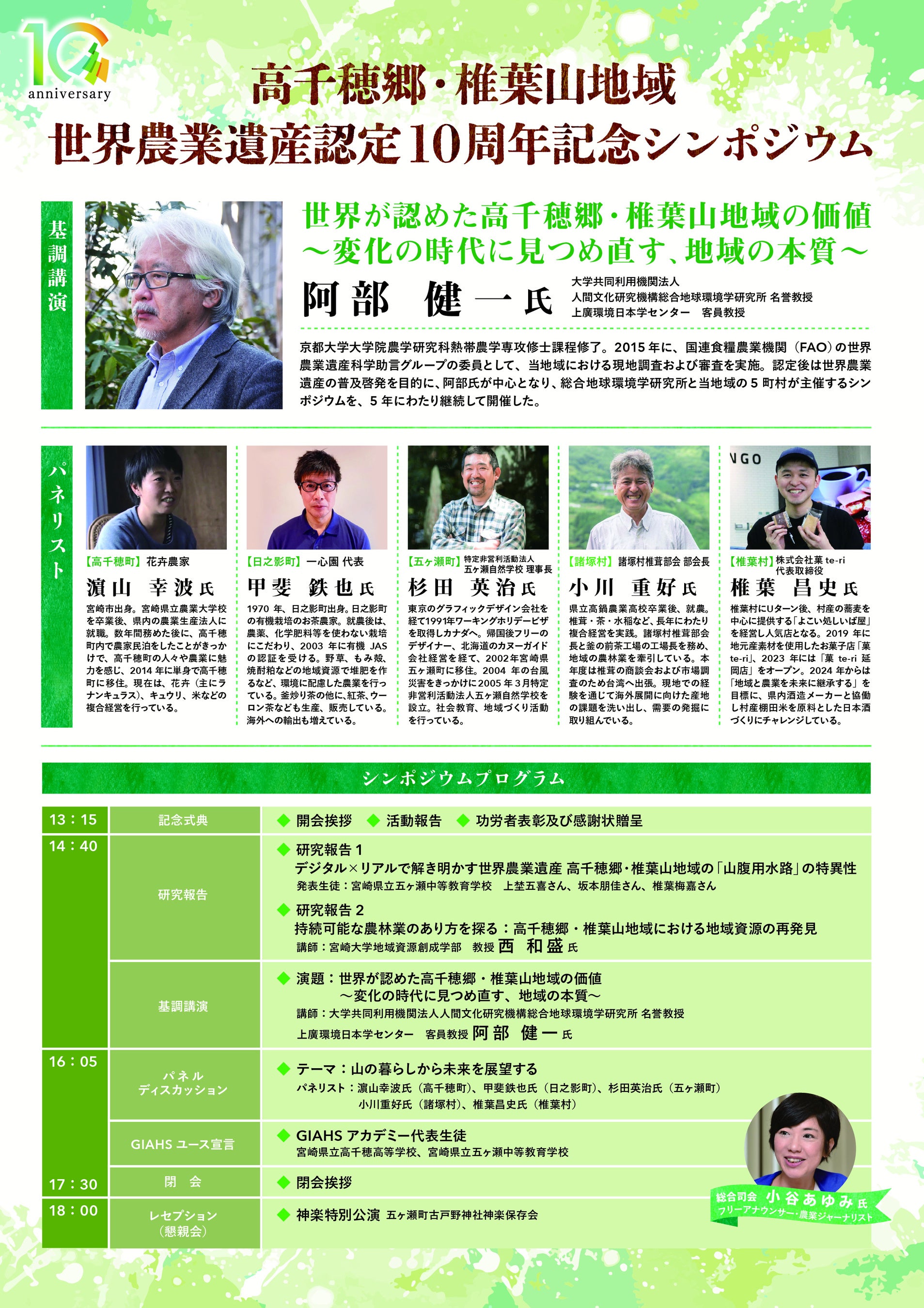 【宮崎県】高千穂郷・椎葉山地域世界農業遺産認定から10年。記念シンポジウムを開催します!!
