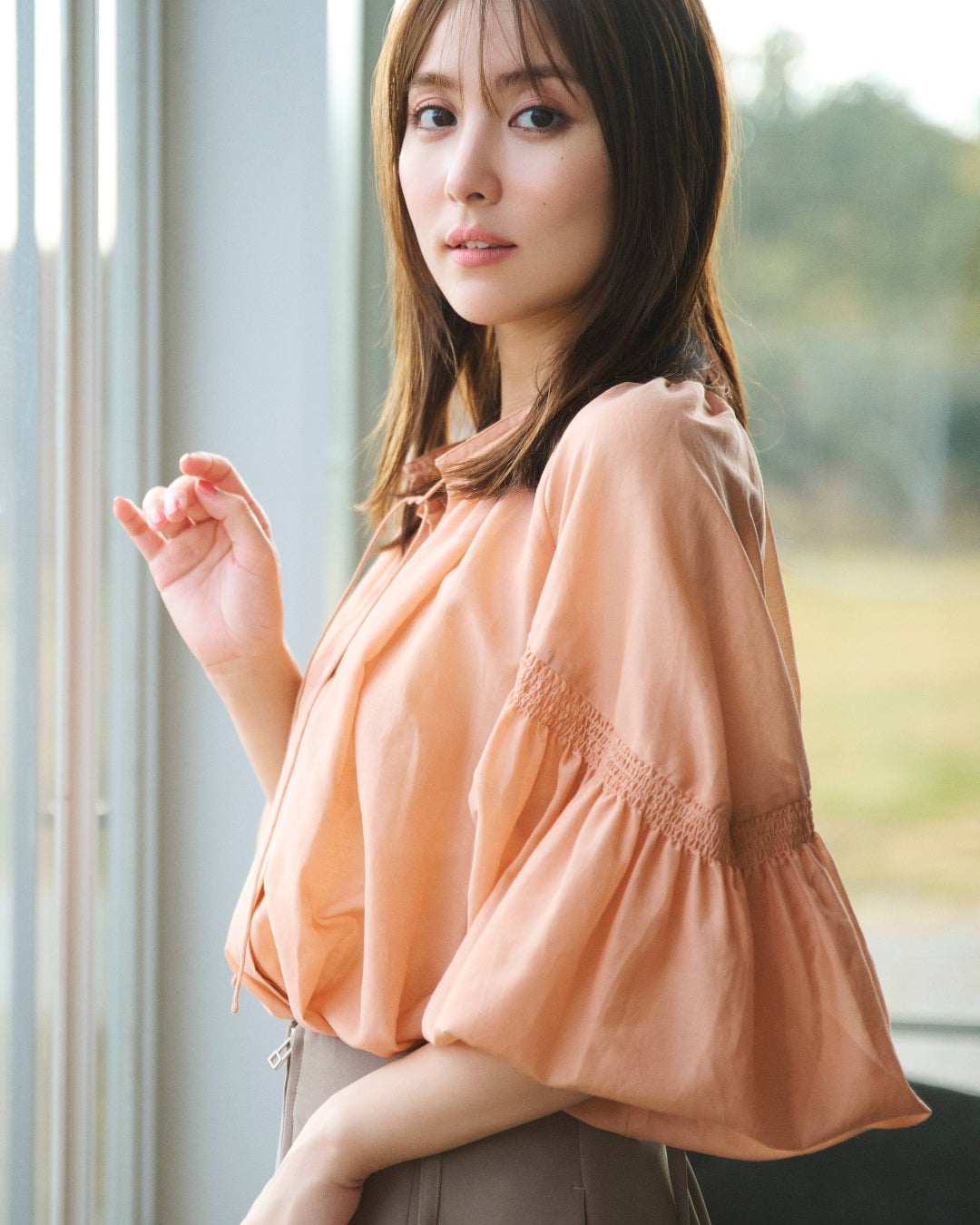 8.ドラマティックなボリュームスリーブを上質なコットンシルクで大人なムードに
