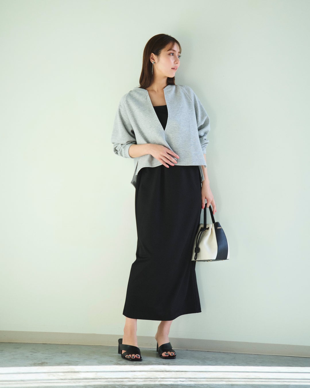 Pullover & Cami Dress Set_¥27,500 Earrings_¥5,280 Bag_¥15,400
