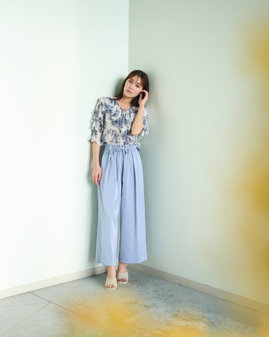 Blouse_¥18,700 / Pants_¥17,600 / Sandals_¥17,600