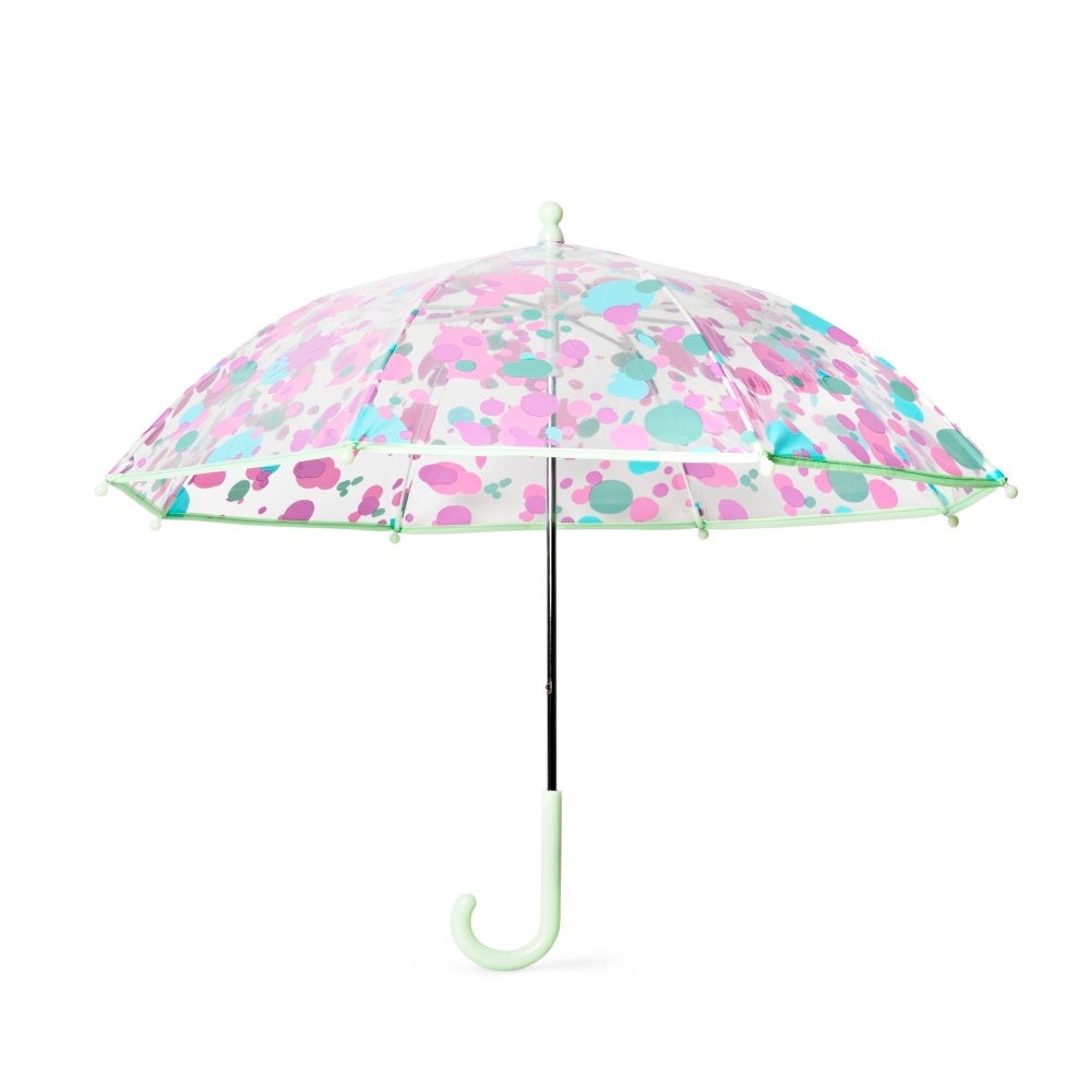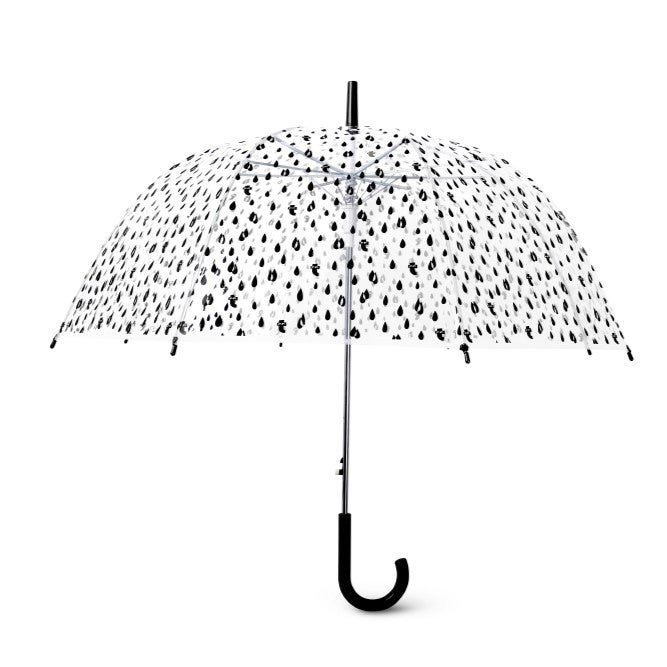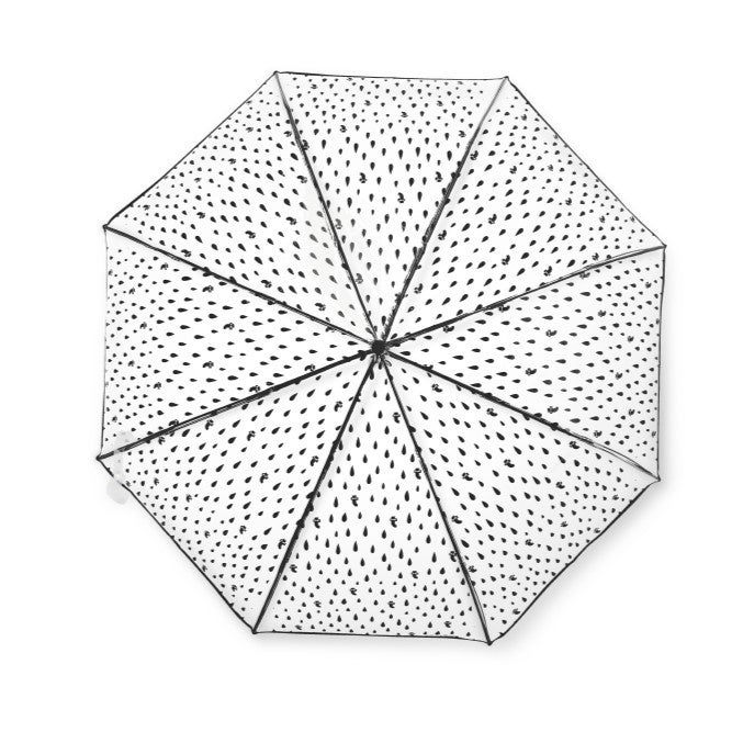 透明のビニール傘も、全面にデザインをあしらうことで、おしゃれに楽しく使えます。