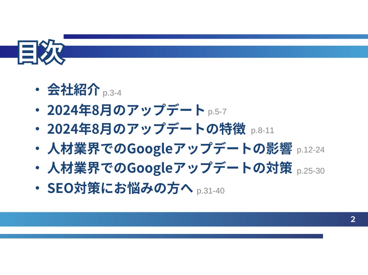株式会社ベクトル(本社:東京都港区、代表取締役会長兼社長:西江 肇司、東証プライム:6058)の子会社であるOwned株式会社(東京都品川区、代表取締役社長、石井翔、以下「当社」)は、人材業界向けに「8月のGoogleアップデート完了による分析レポート」の2024年10月版(全40ページ)を無料公開いたしました。