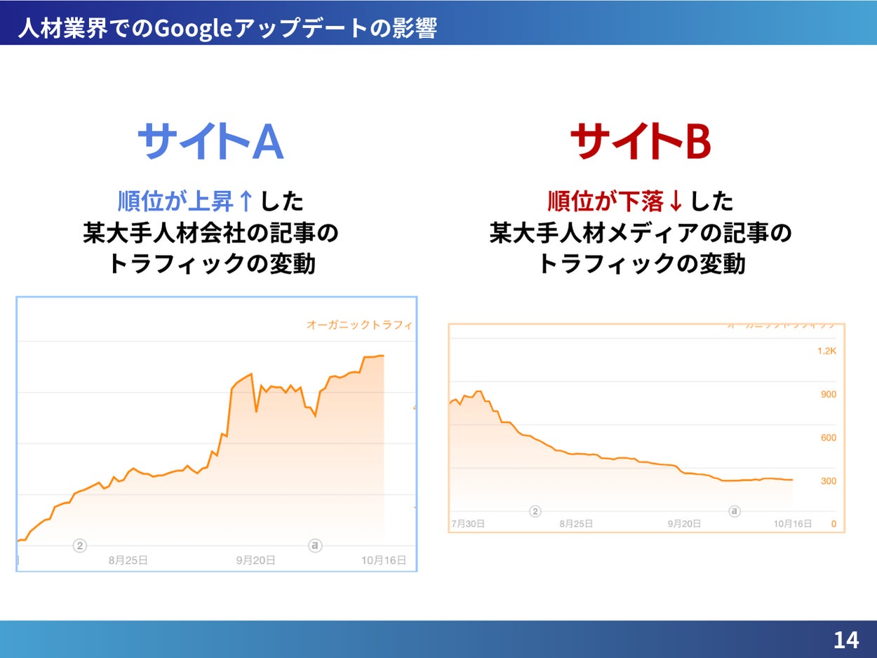 「人材業界でのアップデートの影響」では、実際の事例をもとに、アップデートによる順位変動と対策を解説しています。アップデートの特徴や、業界におけるSEO対策の重要ポイントにも注目です。