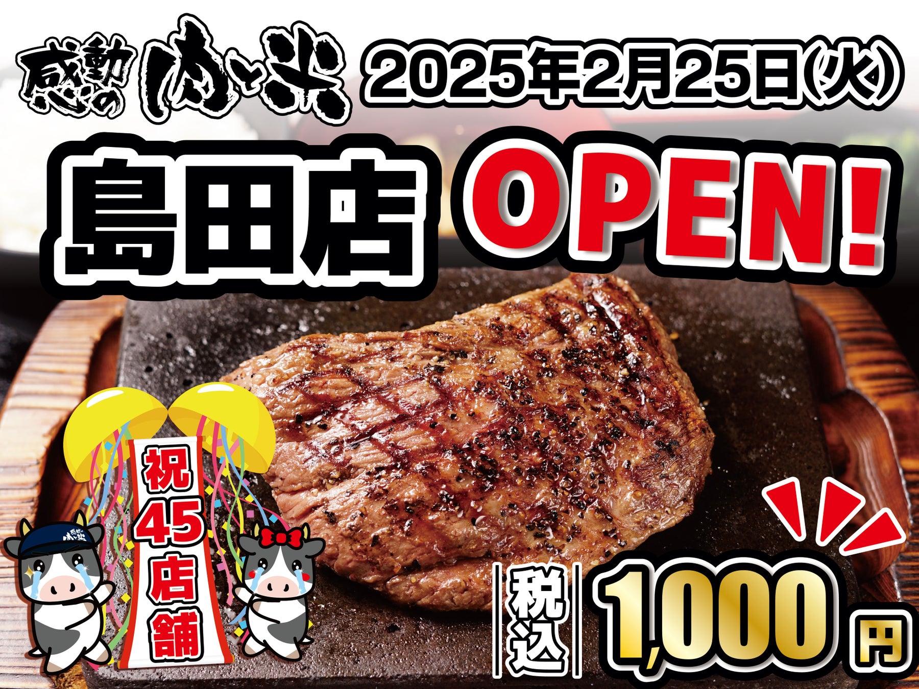 2月25日(火)11:00~『感動の肉と米 島田店』がOPENします!