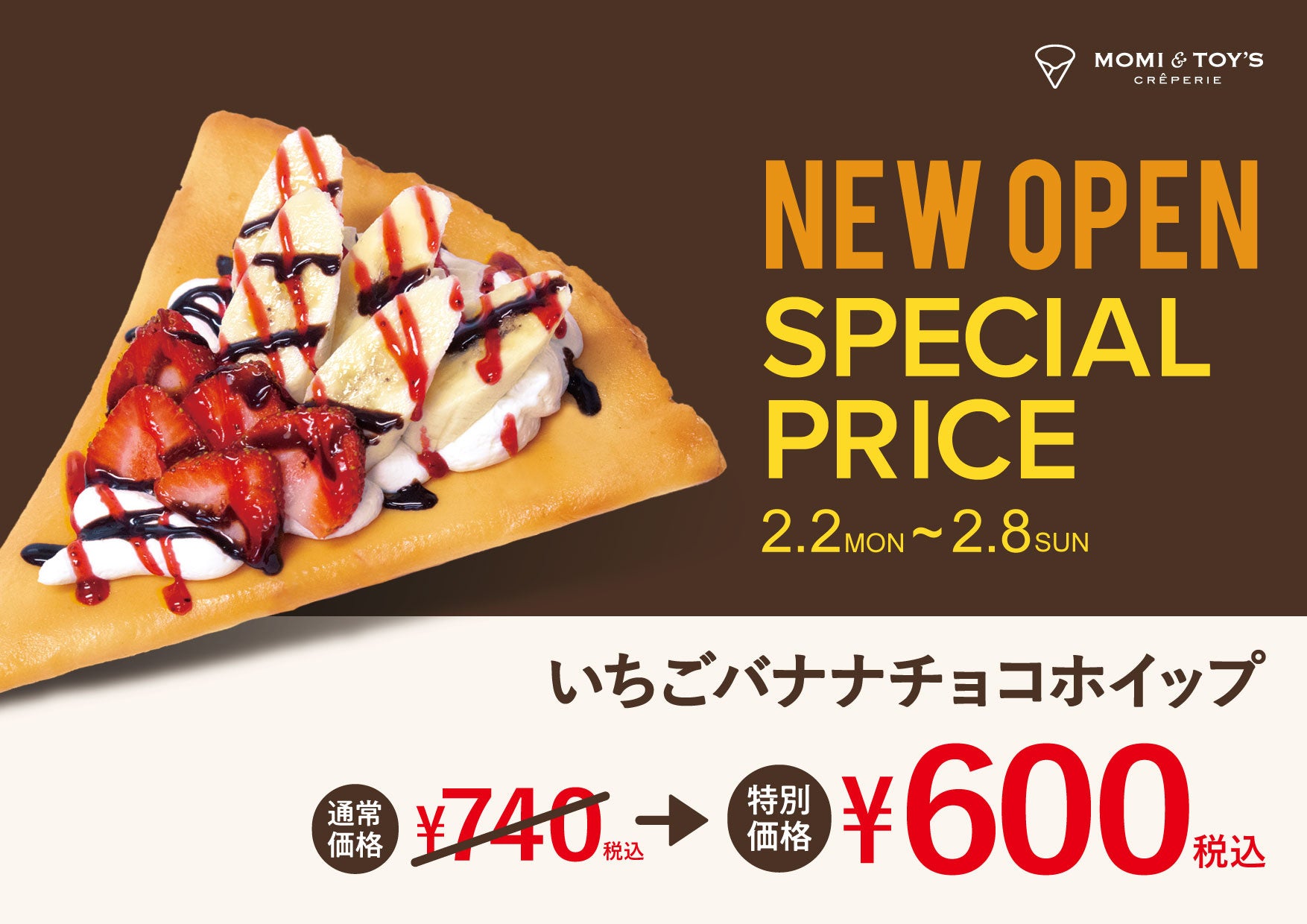 「MOMI&TOY'S(モミアンドトイズ)」で大人気の「いちごバナナチョコホイップ」を、特別価格でご提供します。