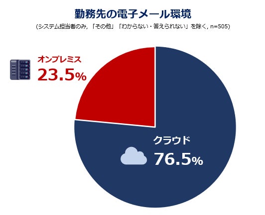 勤務先の電子メール環境はクラウドが3/4、オンプレミスが1/4、製品別ではMicrosoft 365が57.2%と過半数