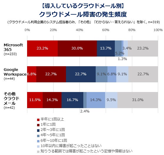 半数弱の企業でクラウドメールの障害が1年に1回以上発生