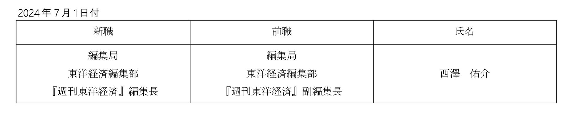 株式会社東洋経済新報社(本社:東京都中央区、代表取締役社長:田北浩章)は、新編集長の就任について、下記のとおりお知らせいたします。