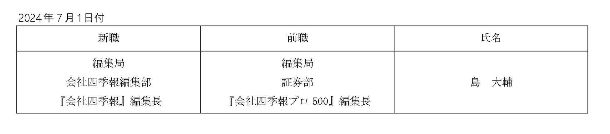 『週刊東洋経済』『会社四季報』新編集長就任のお知らせ