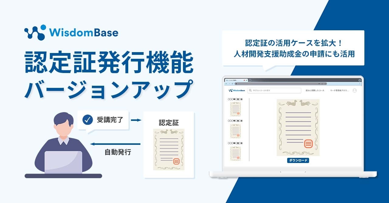 人材開発支援助成金に対応したeラーニングサービスの提供が可能 「認定証発行機能」をバージョンアップし利用ケースを拡大