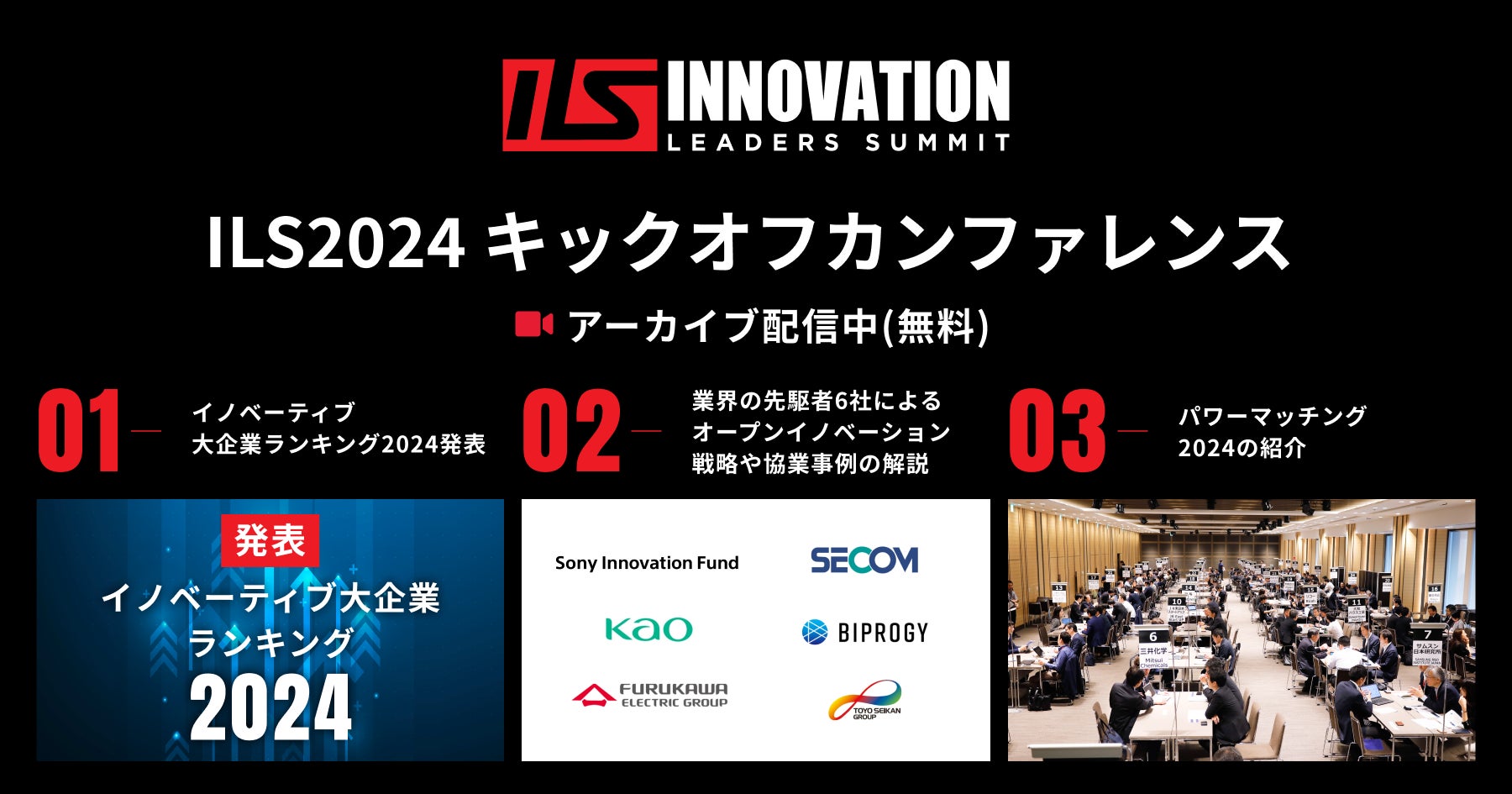 【ILS2024】キックオフカンファレンス無料アーカイブ配信開始! イノベーティブ大企業ランキング2024発表、ソニー/花王/セコムなど業界の先駆者6社によるオープンイノベーション戦略や協業事例の解説