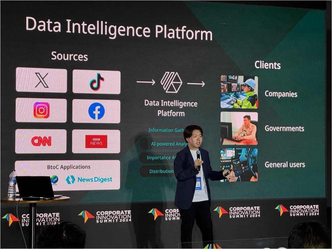 「データインテリジェンスの力でより豊かで安全な社会を創る」をビジョンとして、SNSをはじめとする各種ビッグデータからリスク情報を検知・配信する「FASTALERT(ファストアラート)」や身近な情報を投稿したり、記事を読むだけでポイ活ができる市民参加型ニュース速報アプリ「NewsDigest(ニュースダイジェスト)」といった速報・アラートサービスを提供している当社は、2024年9月25日、26日にタイ・バンコクで開催されたアジア最大の体験型カンファレンス「Corporate Innovation Sumit 2024(コーポレート イノベーション サミット 2024)」(以下「CIS」)への参加と発表を行いました。
