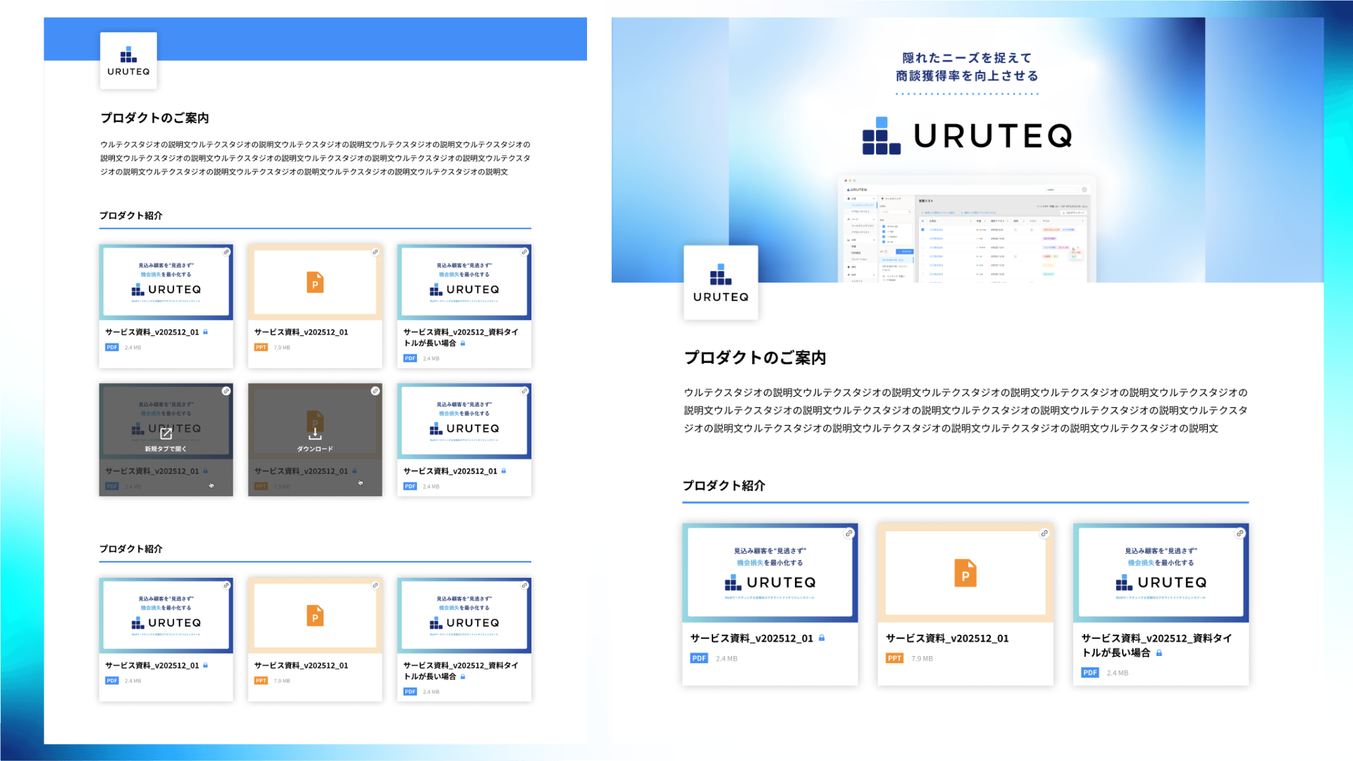 ウルテクでは、この「匿名層の取りこぼし」と「営業へのトスアップの難しさ」を解決するため、資料閲覧という行為そのものを「リード獲得からアポ獲得までをその場で完結させるインタラクティブなチャネル」へと進化させる「ウルテク スタジオ」を開発いたしました。