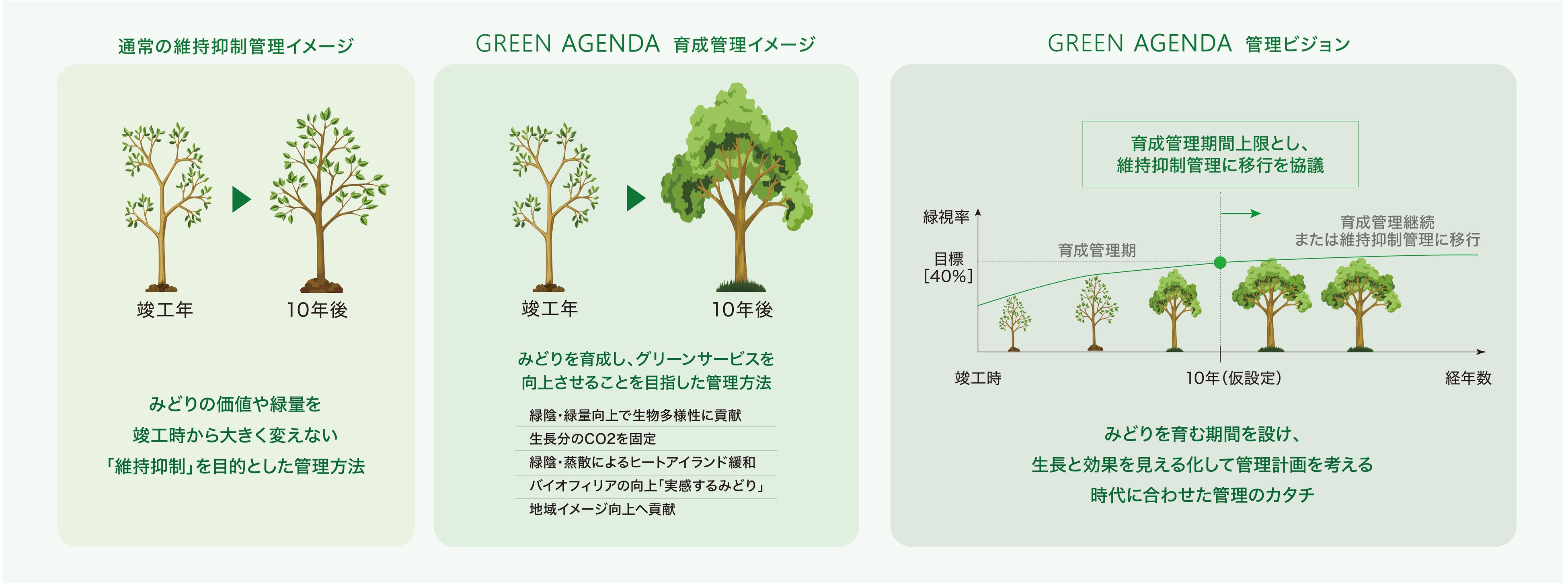 また、本物件は当社とグループ会社である株式会社石勝エクステリア(本社:東京都世⽥⾕区、代表取締役社⻑:合間 功)の協業により策定した「GREEN AGENDA」による植栽管理を導入した第一号物件となります。「GREEN AGENDA」とは、従来導入されている緑量を竣工時から一定に保つ「維持」を目的とした管理方法から、緑を育成することで価値やグリーンサービスを向上させることを目指した管理方法のことで、「GREEN AGENDA」の導入により、緑陰・緑量向上に伴う生物多様性への貢献およびヒートアイランド緩和、生長分のCO2固定、バイオフィリアの向上など多面的な効果が期待できます。また、入居者に緑に対する関心や愛着を持って自然との触れ合いを楽しんでいただける仕掛けづくりも行う予定です。