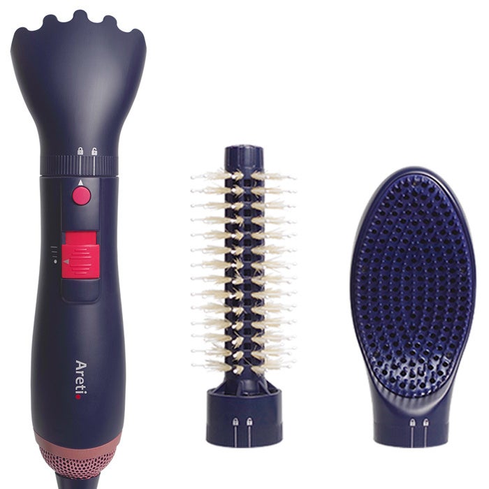 内蔵したセラミックプレートによる遠赤外線でスタイリングしながら地肌ケアを両立。髪の根元を立ち上げる"ホットハンド"、ボリュームアップできる"ロールブラシ"、ボリュームを抑えてサラサラストレートにする"デタングルブラシ"を付属。