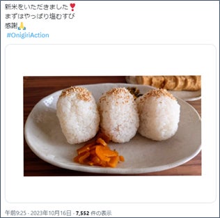 おにぎりアクション開催時期は、ちょうど新米の時期にも重なります。シンプルな塩むすびで新米のおいしさを味わうなど、新米を楽しみ、感謝する姿が多数見られました。