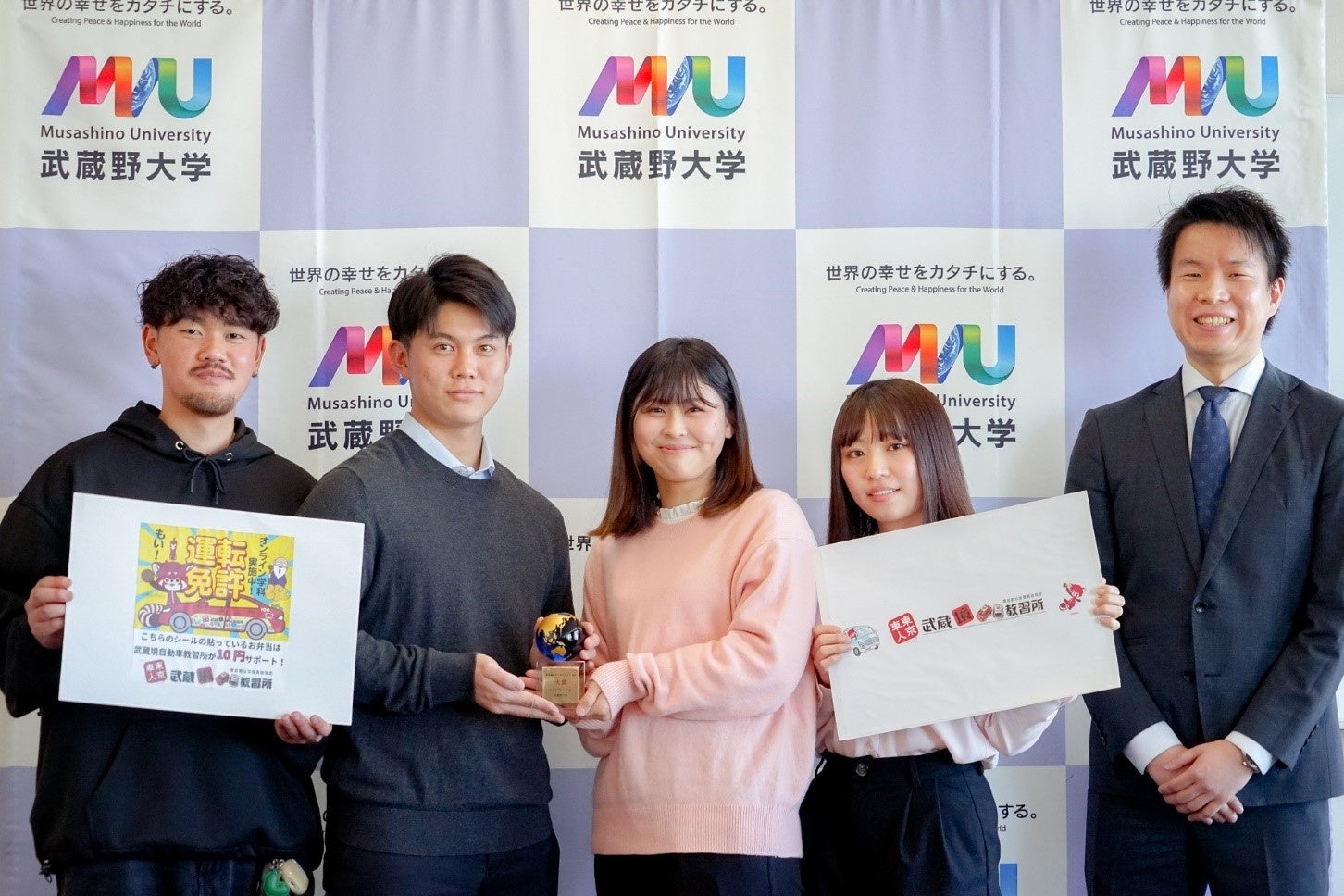 今回のビジネスコンペには、9つの大学と3つの企業から200名以上が参加し、学生と社会人で編成されたチームが「『持続可能な社会を創ろう︕』 SDGs産学官プロジェクト〜いま、わたしたちがすべきこと〜」をテーマに新規ビジネスモデルを構築し、プレゼンテーションを行いました。最終審査の結果、武蔵野大学の「YAドランくん」チームが発表した、「あなたの買い物が安くなる!Prodis sticker ~企業と割り勘~」が大賞を受賞しました。商品購入者、商品提供者、広告出稿者の3者がともにWin‐Win-Winの関係を構築できる新しい広告のあり方を提案し、スモールビジネスからスタートでき、実現性が高い点も評価されました。