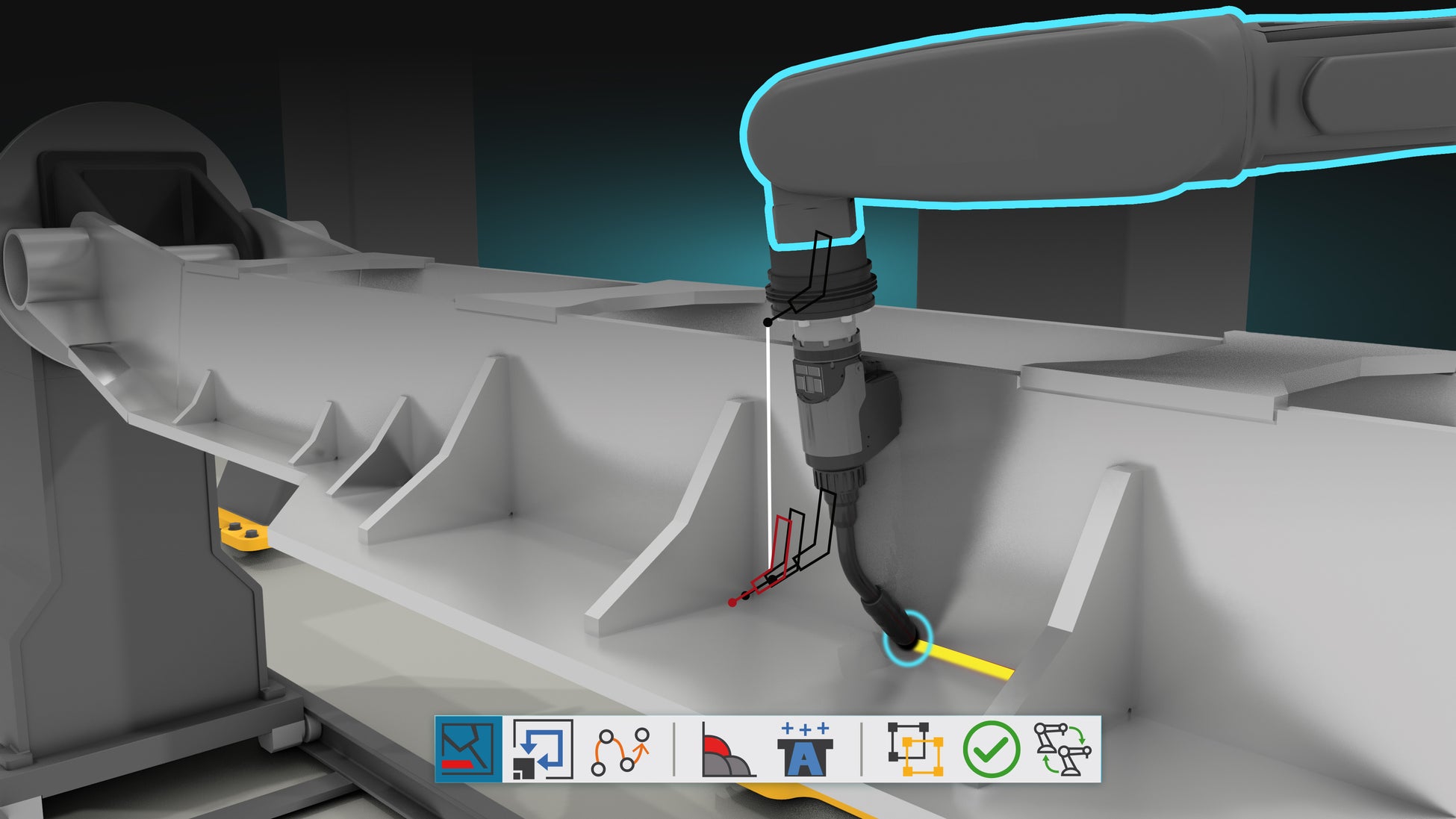 新たに搭載された自動パスソルバーにより、衝突回避、関節制限、到達性を考慮した安全な動作経路を自動生成します。狭い作業空間や複雑な設備条件でも、動作パス調整の効率化を支援します。 -