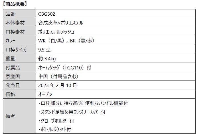 ブリヂストンスポーツ株式会社は、プロモデルシリーズとして機能性に優れた『プロレプリカモデル(CBG301)』と『プロスタンドモデル(CBG302)』、そして『ボストンバッグ2種(BBG301/BBG302)』を2月10日より発売します。価格は全てオープンです。