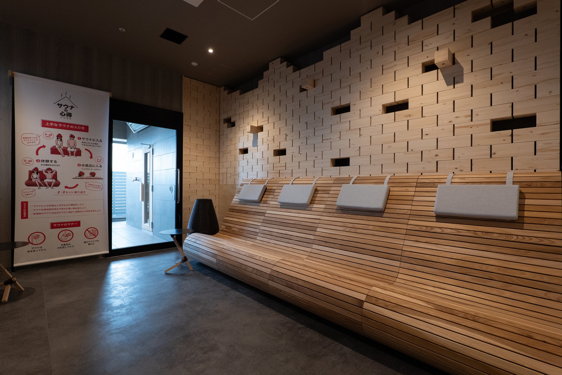 ・STEM SAUNA: 最大7名まで利用可能。野球観戦も楽しめるTV付き 「ととのいスペース」で、仲間と「大人の秘密基地」のような時間を満喫。