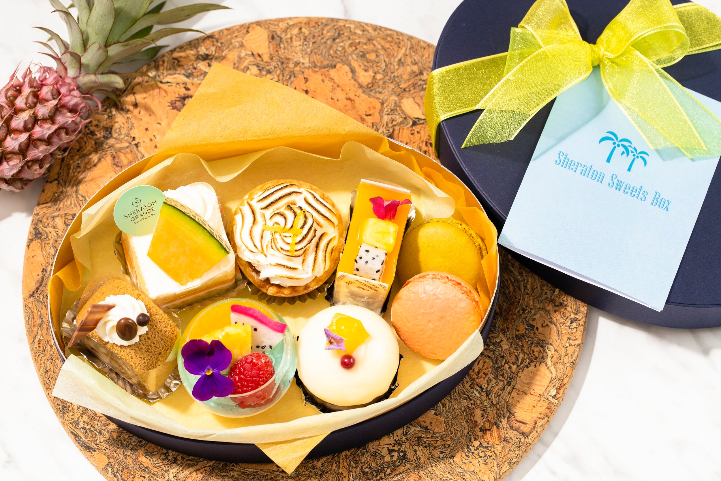 8種類のミニスイーツを楽しめる、毎月好評の「#シェラトンスイーツボックス」も、“ハワイ”にちなんだ、シェフ選りすぐりのトロピカルなミニスイーツを集めました。テイクアウトもできますので、ご自宅でもハワイ気分をお楽しみください。